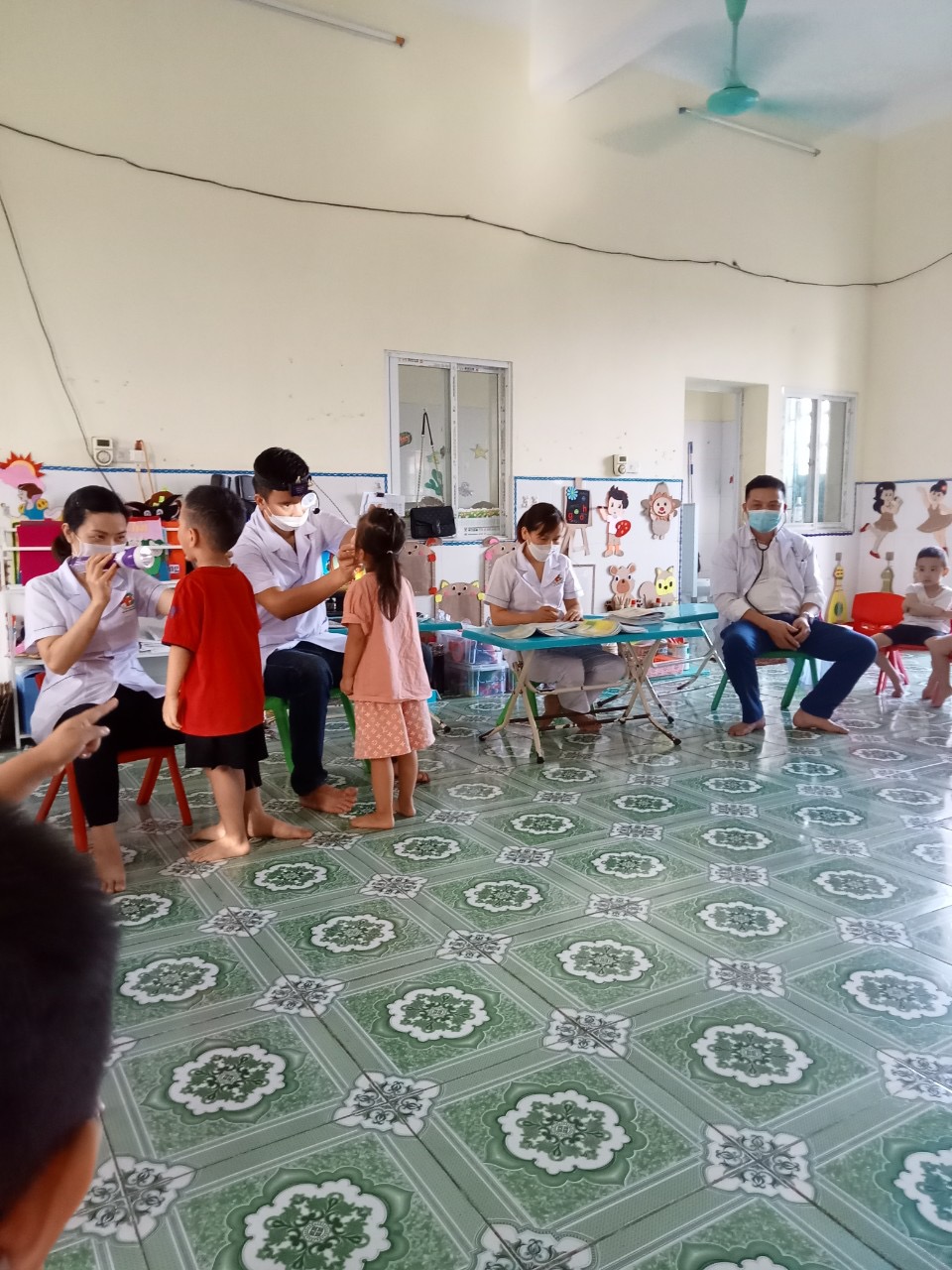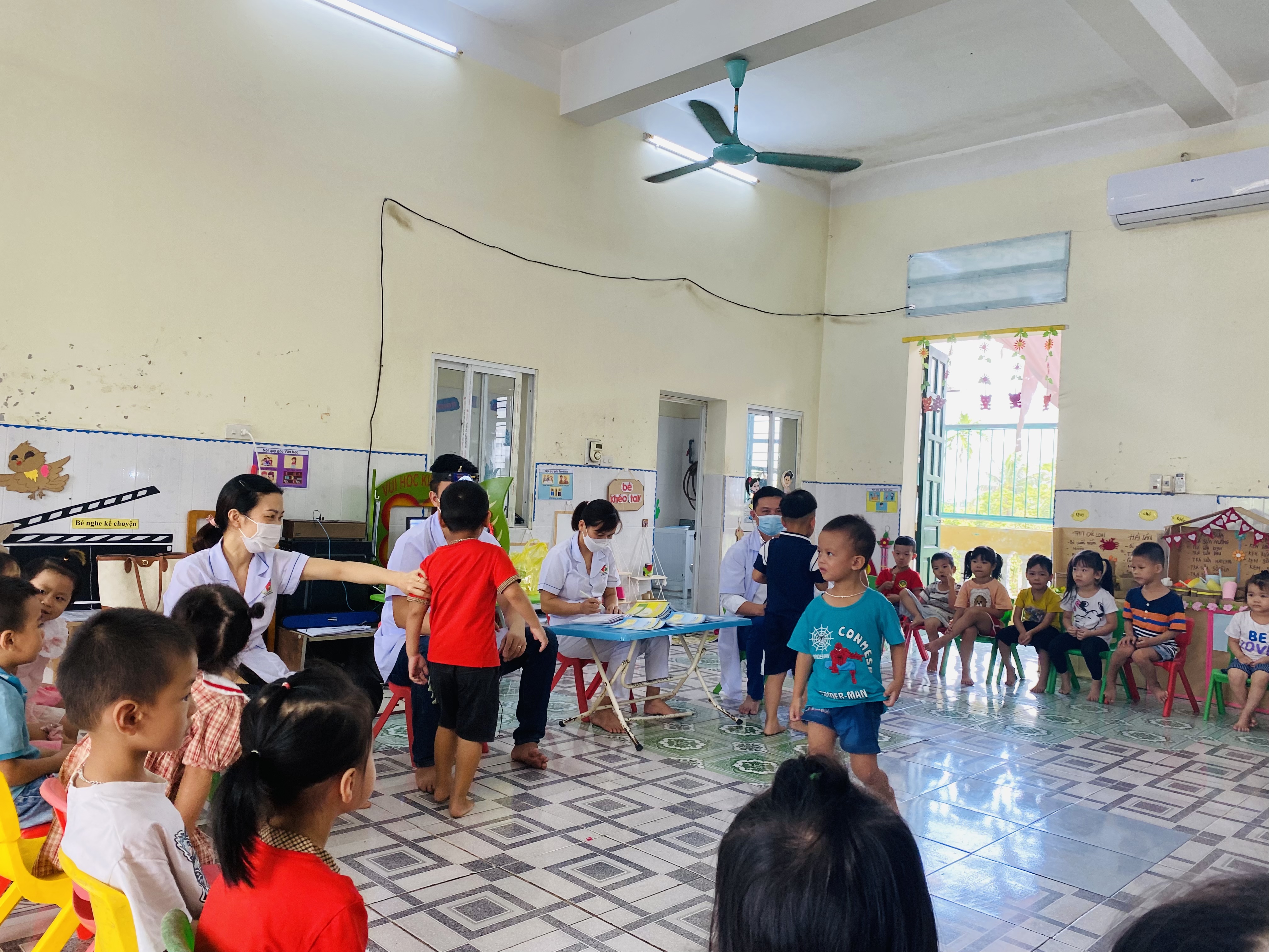 Các bác sĩ chuyên khoa khám bệnh định kì cho các bé lớp 4T3