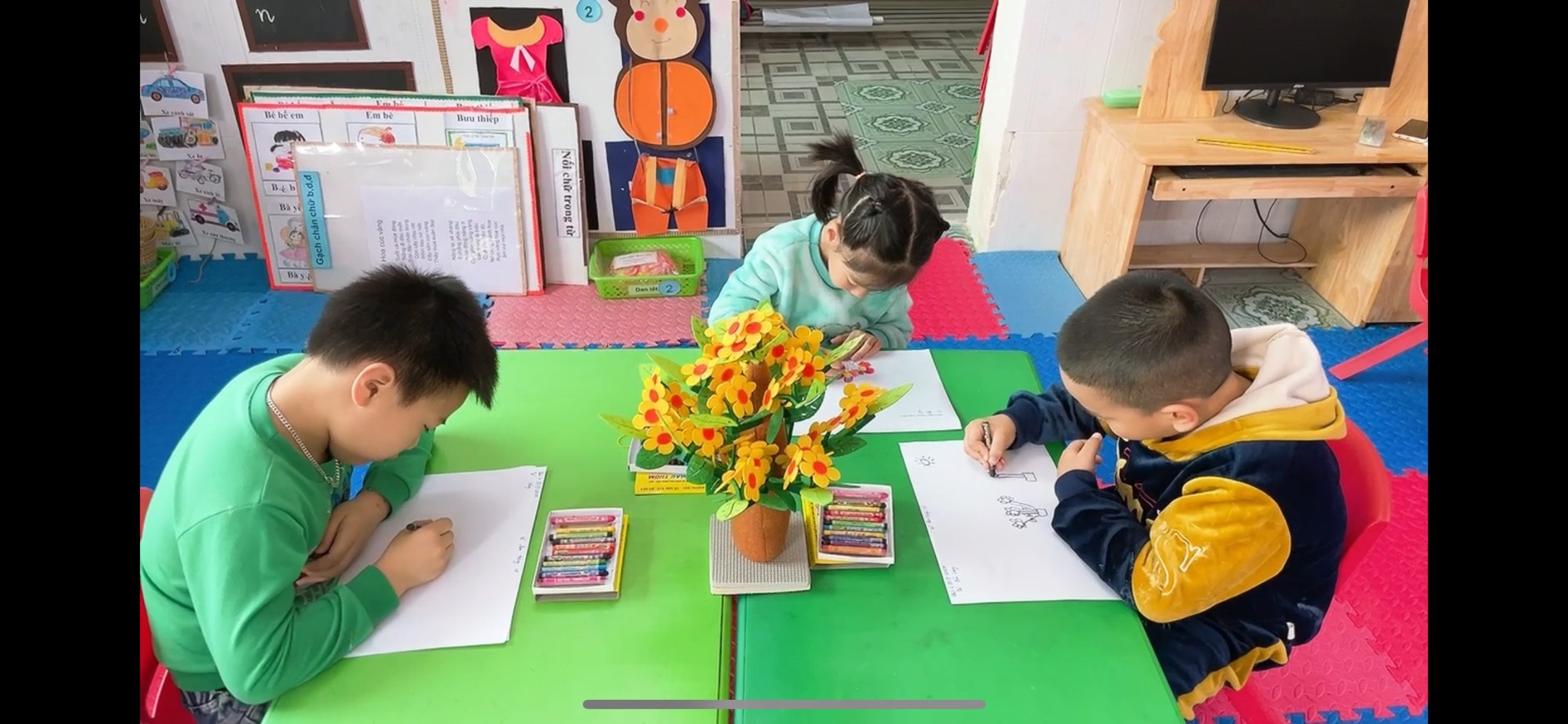 Các bạn lớp 5T1 vẽ hoa tặng cô
