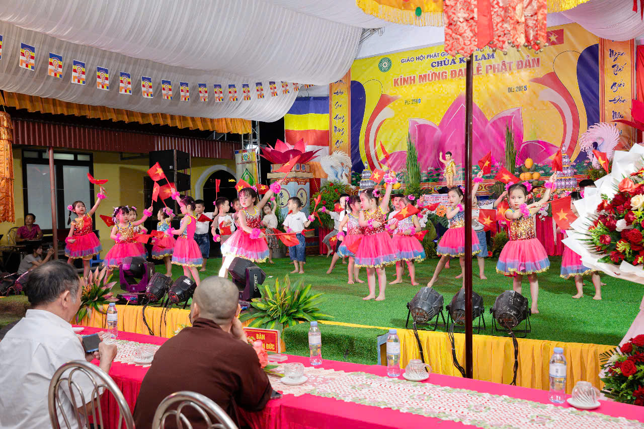 Các bé lớp 4 Tuổi 2 tự tin thể hiện tài năng trong mùa Phật Đản tại Chùa Kế Lam, Thôn 1- Xã Lý Hoc.