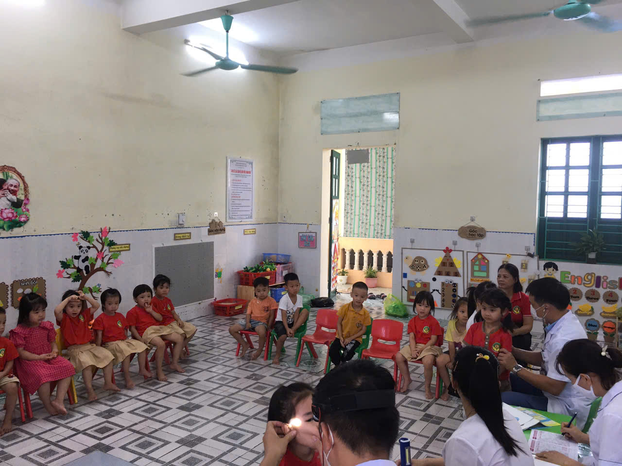 Trong các hoạt động của nhà trường, công tác chăm sóc sức khỏe cho trẻ là một việc làm luôn được nhà trường đặc biệt quan tâm. Từ nhiều năm nay, việc tổ chức khám sức khỏe định kỳ cho trẻ đã được nhà trường duy trì thành nề nếp thực hiện thường xuyên theo kế hoạch 2 lần trong năm học. Việc làm này có ý nghĩa hết sức thiết thực, thông qua việc khám sức khỏe định kỳ cho trẻ đã góp phần làm tốt công tác chăm sóc sức khoẻ ban đầu, tình trạng sức khoẻ hiện tại của trẻ mà còn nâng cao nhận thức cho phụ huynh về ý thức phòng chống một số bệnh thường gặp ở lứa tuổi mầm non và cũng qua hoạt động này đã đem lại sự phấn khởi, tin tưởng trong các bậc phụ huynh về một môi trường giáo dục an toàn và thân thiện. Từ đó giữa nhà trường, cô giáo và các bậc phụ huynh tìm ra hướng đi chung chăm sóc trẻ được tốt hơn giúp trẻ phát triển về mặt thể chất một cách tốt nhất Ngày 21 tháng 10 năm 2024, Nhà trường phối hợp với bệnh viện đa khoa Vĩnh Bảo khám sức khoẻ cho trẻ tại lớp. Kết quả kiểm tra sức khoẻ của trẻ đã được cán bộ y tế, cùng giáo viên phụ trách lớp ghi chép cụ thể trong sổ theo dõi sức khỏe, chấm biểu đồ phân loại sức khỏe trẻ và được giáo viên các lớp thông báo đến phụ huynh, đặc biệt là một số trẻ mắc bệnh qua đó phụ huynh cùng phối hợp có biện pháp điều trị kịp thời cho trẻ. Dưới đây là một số hình ảnh khám sức khỏe định kì tại lớp 4T1 trường mầm non Lý Học