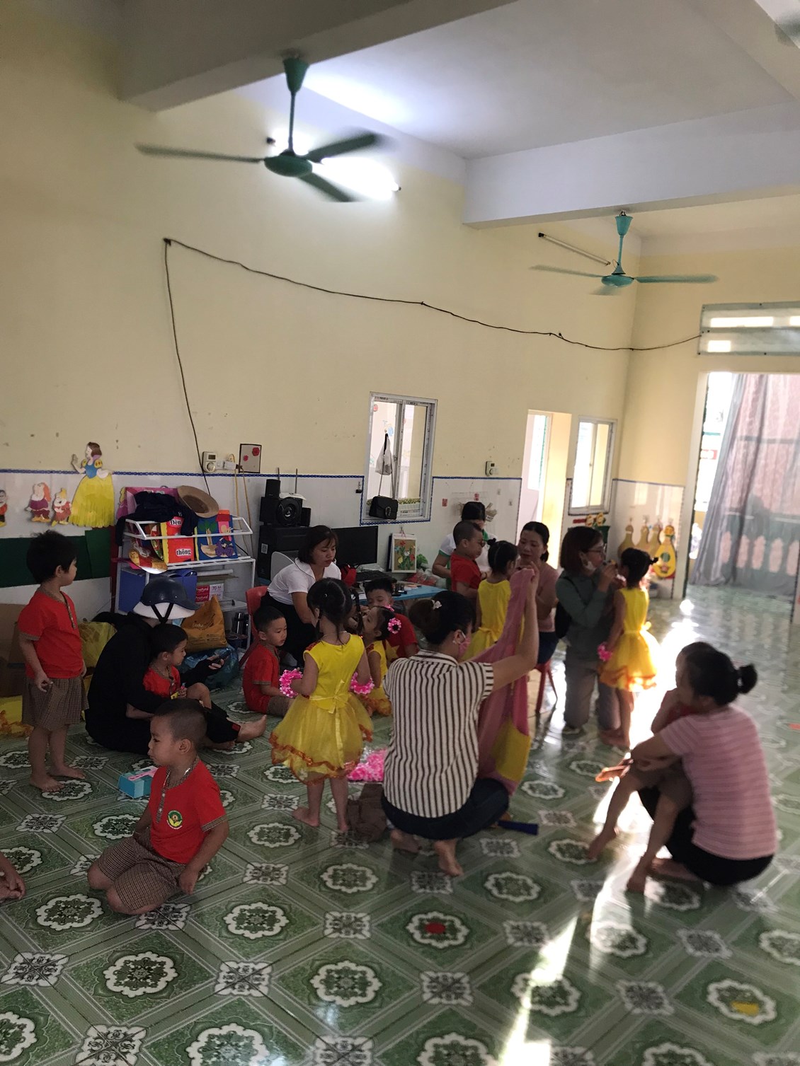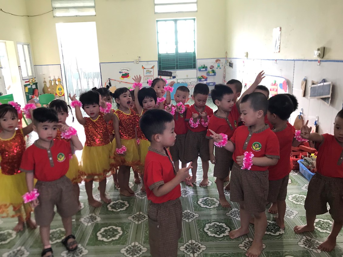 chuẩn bị tiết mục văn nghệ khai giảng chào mừng năm học mới.Các bé lớp 4 Tuổi 3 với những trang phục đẹp mắt.