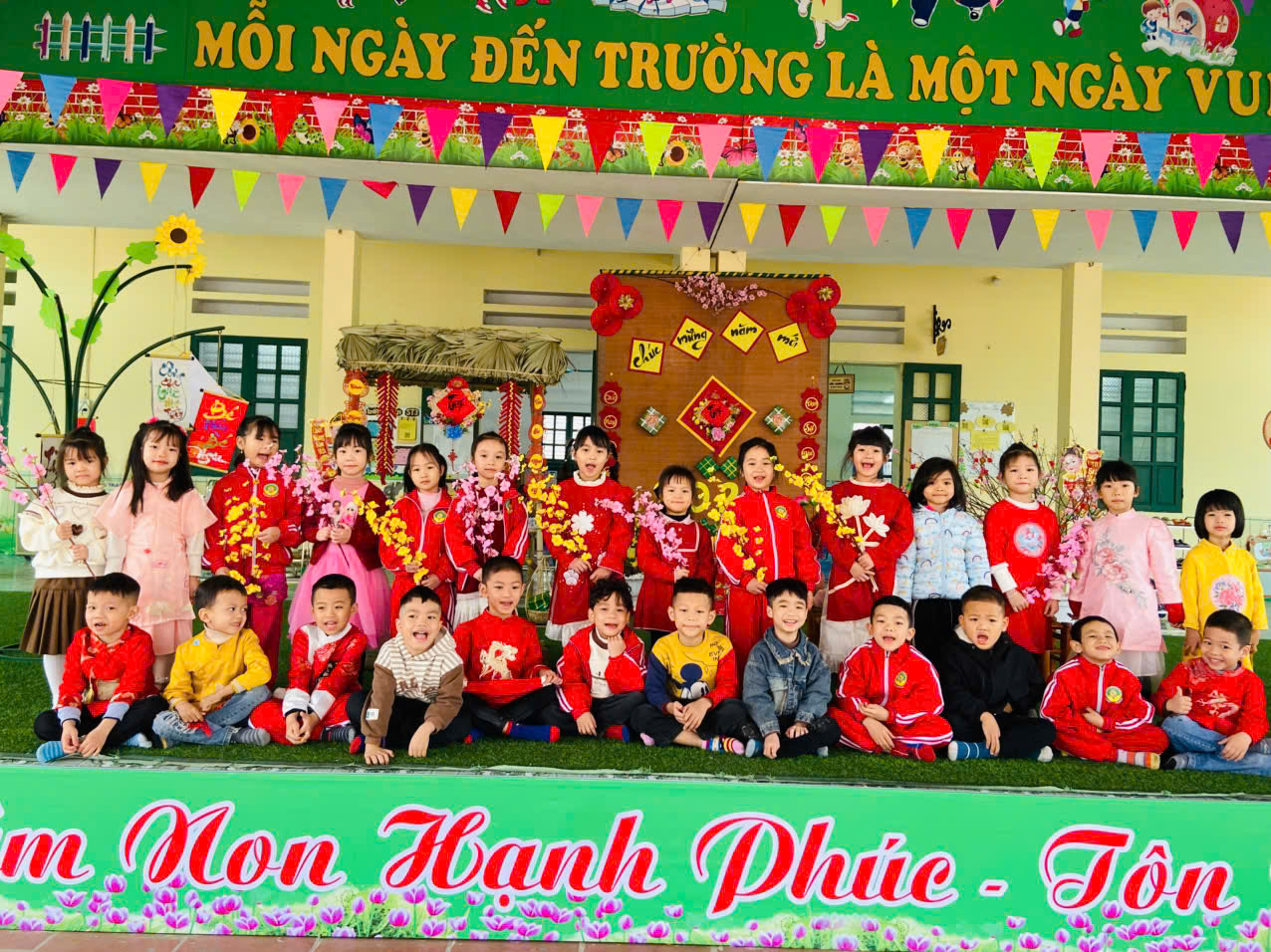 Hoà trong không khí Tết đang đến gần, các cô giáo trường mầm non Lý Học đã trang trí Tết sảnh sân khấu vô cùng đẹp mắt và hấp dẫn. Đây là điểm check in yêu thích của các bạn nhỏ trong trường nói chung và lớp 5 tuổi 2 nói riêng.