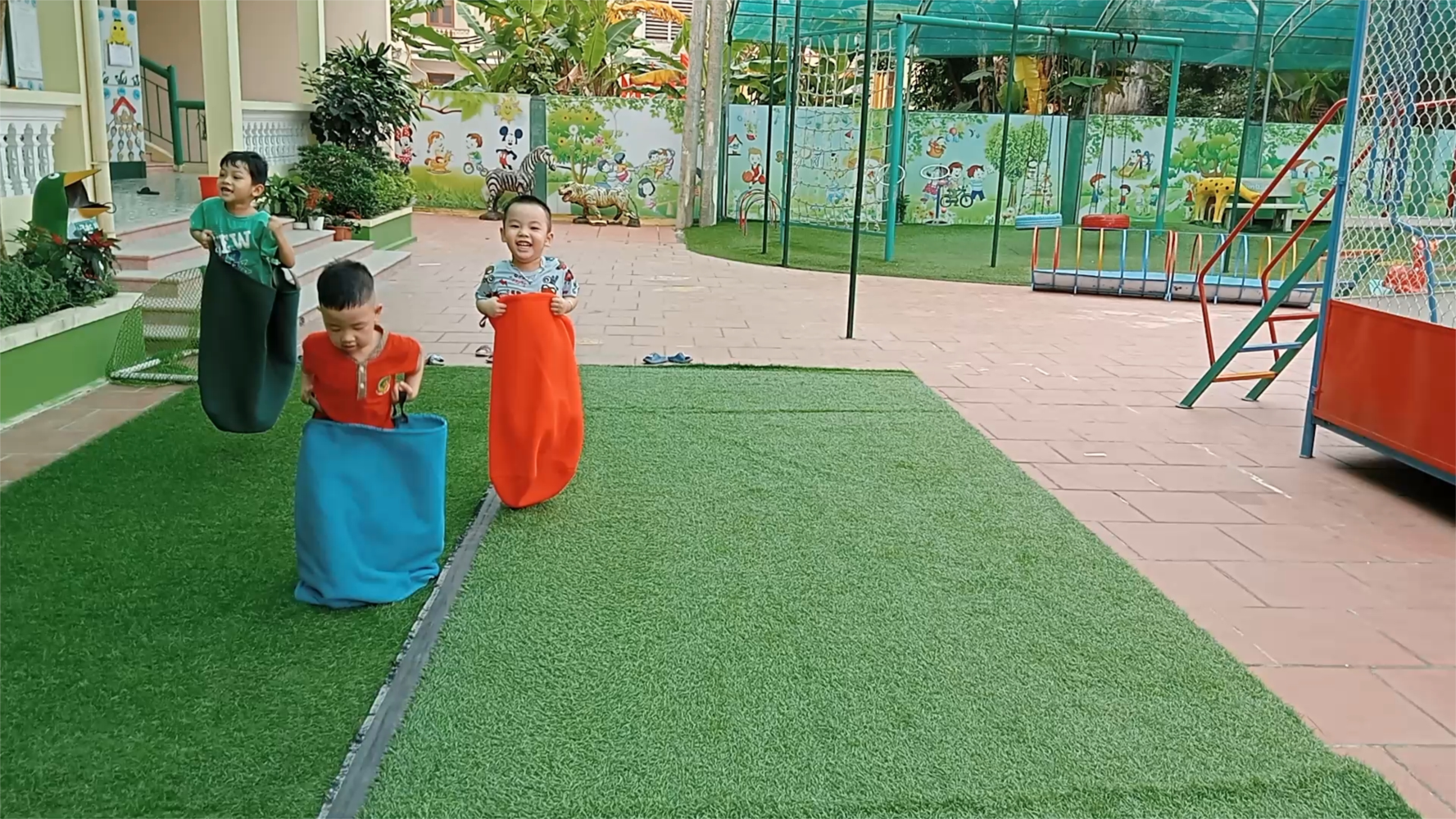 Nhảy bao bố là trò chơi dân gian mang tính tập thể, nhằm rèn luyện thể lực, sức bật, sự khéo léo và khả năng giữ thăng bằng của các bé. Vì là trò chơi mầm non đồng đội nên còn rèn luyện khả năng phối hợp nhóm. Trò chơi này thường được tổ chức trong các hội thi của trường, của thôn, xóm, xã, phường để nâng cao tinh thần đoàn kết của mọi người. Sau đây là hình ảnh nhảy bao bố của các bé lớp 3T2.