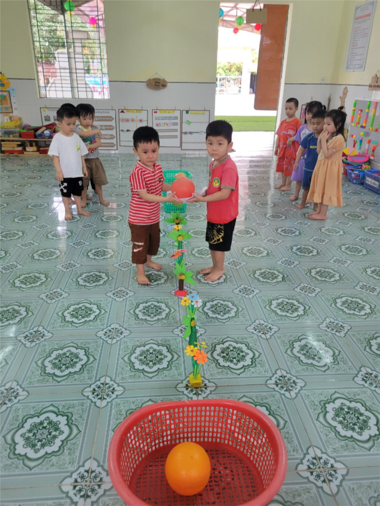 Các trò chơi vận động thường dễ chơi, dễ hòa nhập, bất cứ nơi đâu: trong nhà, trong lớp học, ngoài sân,... đều có thể tổ chức trò chơi vận động cho trẻ. Bên cạnh đó, tham gia các trò chơi vận động do trẻ tự thực hiện sẽ giúp trẻ phát hiện ra cơ thể mình có thể làm những gì, có óc sáng tạo, và vui thích được vận động mà không cần người lớn dẫn dắt. Từ những kinh nghiệm thực tế như vậy, trẻ có thể tự khám phá bản thân mình và khám phá thế giới xung quanh. Và hôm nay, các bé lớp 3t1 tham gia một trò chơi mới vô cùng thú vị, đòi hỏi sự kết hợp khéo léo của 2 bạn, đó là trò chơi "Chuyển bóng bằng giấy"!