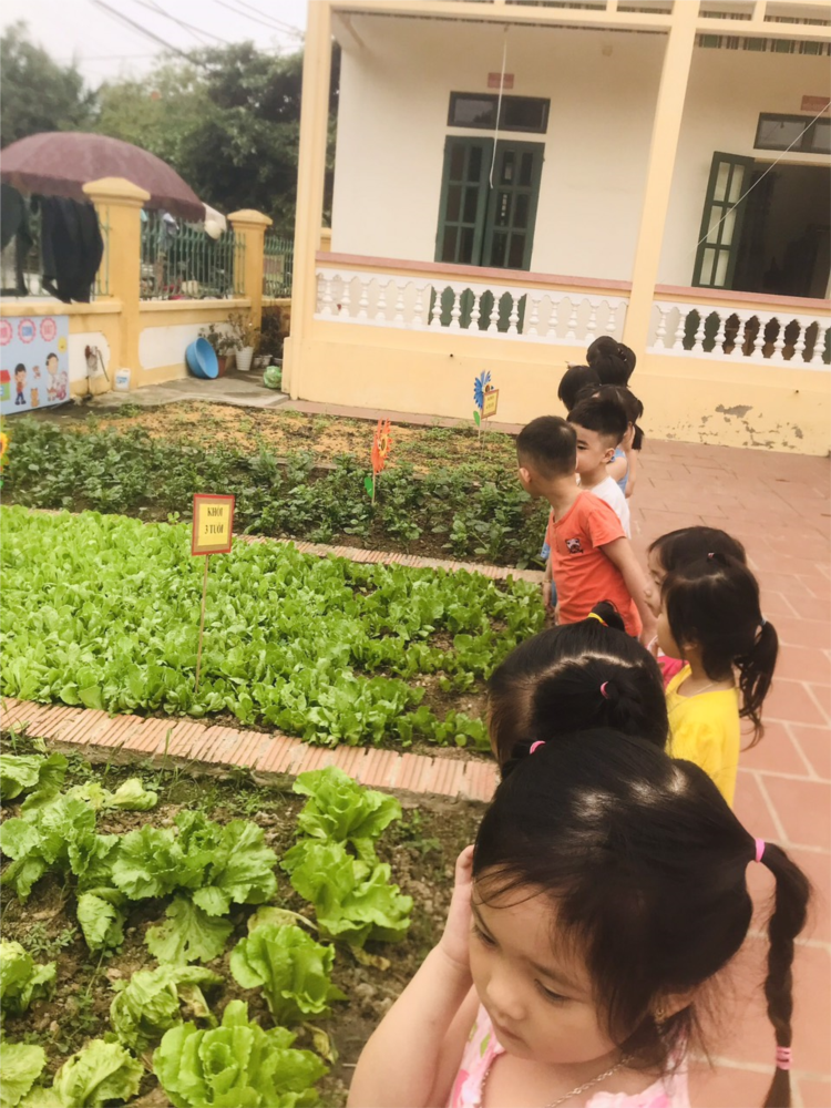 Tổ chức cho các cháu lớp Mầm, Chồi, Lá đi tham quan vườn rau và trải nghiệm nhằm giúp các bé có thêm hiểu biết về công việc trồng rau như thế nào Qua buổi học tập kỹ năng và tham quan đầy ý nghĩa này, giúp các bé tìm hiểu rõ hơn các loại rau, củ, quả các loại cây theo hình dáng, màu sắc, mùi vị khác nhau giúp bé cảm nhận được trực tiếp và ấn tượng rõ hơn. Được giới thiệu về các vitamin có trong rau, củ, quả và cách chế biến chúng trong bữa ăn hàng ngày. Trải nghiệm này sẽ giúp bé có hứng thú với rau,củ, quả hơn và khuyến khích bé ăn rau nhiều hơn trong bữa ăn.