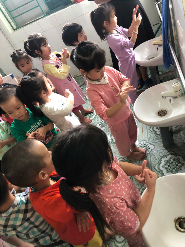 Cùng các bé lớp 4T1 vệ sinh tay thật sạch nhé!