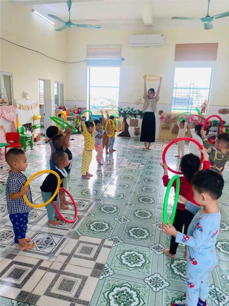 Thể dục sáng là một hoạt động rất quan trọng trong chế độ sinh hoạt hằng ngày của trẻ nhà trẻ, mang lại nhiều lợi ích thiết thực: 1. Phát triển thể chất Giúp cơ thể trẻ khỏe mạnh, tăng cường sức đề kháng. Phát triển các nhóm cơ, xương khớp, giúp trẻ nhanh nhẹn, dẻo dai hơn. Hỗ trợ phát triển chiều cao và thể lực. 2. Tạo tinh thần vui vẻ, hứng khởi Giúp trẻ tỉnh táo, sảng khoái khi bắt đầu một ngày mới. Tạo tâm lý vui vẻ, giảm quấy khóc, giúp trẻ dễ hòa nhập với lớp học. 3. Hình thành thói quen tốt Rèn cho trẻ thói quen vận động thường xuyên. Giáo dục trẻ nề nếp sinh hoạt khoa học, đúng giờ. 4. Phát triển kỹ năng vận động Giúp trẻ làm quen với các động tác cơ bản: đi, chạy, nhảy, giơ tay, cúi người… Tăng khả năng phối hợp tay – chân và sự khéo léo. 5. Tăng khả năng giao tiếp, hòa đồng Trẻ tham gia cùng cô và các bạn, từ đó mạnh dạn hơn. Hình thành tinh thần tập thể, biết làm theo hiệu lệnh.