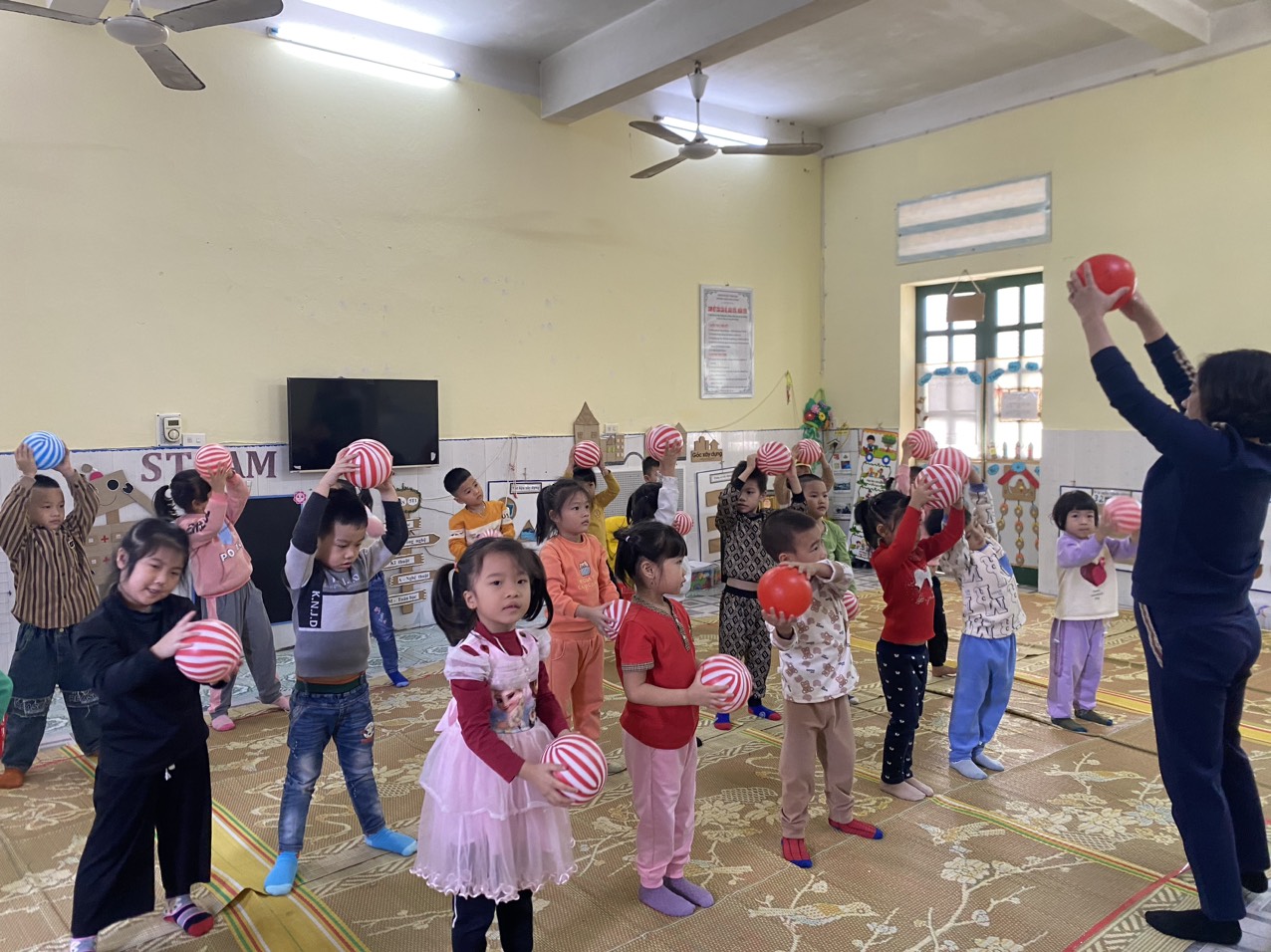 Cùng tập thể dục với bóng cùng các bạn lớp 5T2