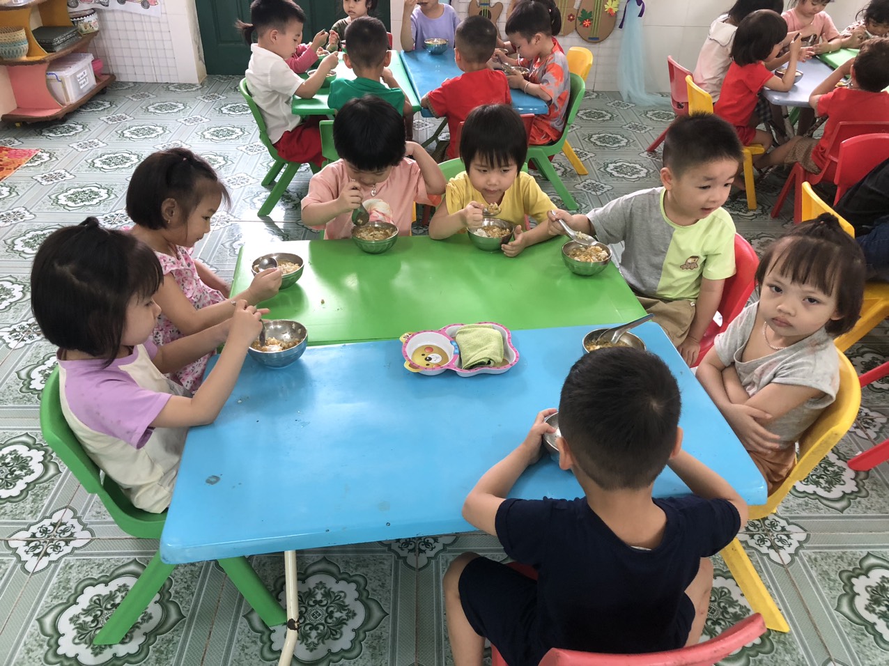 Giờ ăn trưa là một hoạt động quan trọng trong chế độ sinh hoạt hằng ngày của trẻ mầm non. Tại lớp, các bé được cô giáo hướng dẫn rửa tay sạch sẽ trước khi ăn, ngồi ngay ngắn và tự xúc ăn theo khả năng của mình. Trong bữa ăn, cô giáo luôn quan tâm, động viên để các con ăn ngon miệng, ăn hết suất, đồng thời nhẹ nhàng nhắc nhở trẻ giữ gìn vệ sinh, không nói chuyện to và biết mời cô, mời bạn trước khi ăn. Bữa ăn không chỉ giúp trẻ bổ sung đầy đủ dinh dưỡng để phát triển khỏe mạnh, mà còn rèn cho trẻ nề nếp, kỹ năng tự phục vụ và thói quen ăn uống khoa học. Với sự chăm sóc tận tình của cô giáo, giờ ăn trưa luôn diễn ra trong không khí vui vẻ, ấm áp, giúp các con cảm nhận được sự quan tâm và yêu thương mỗi ngày khi đến trường. 🌱