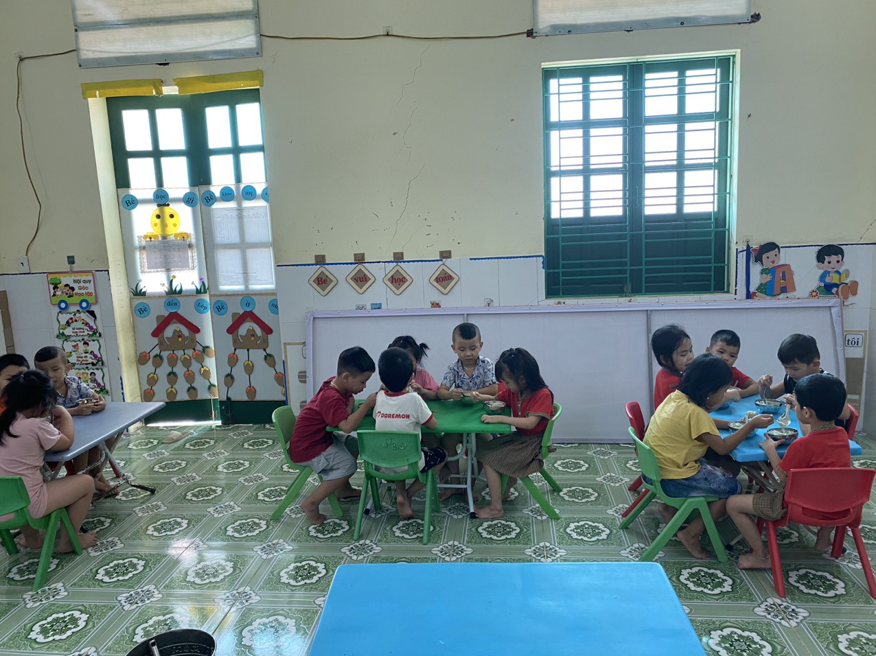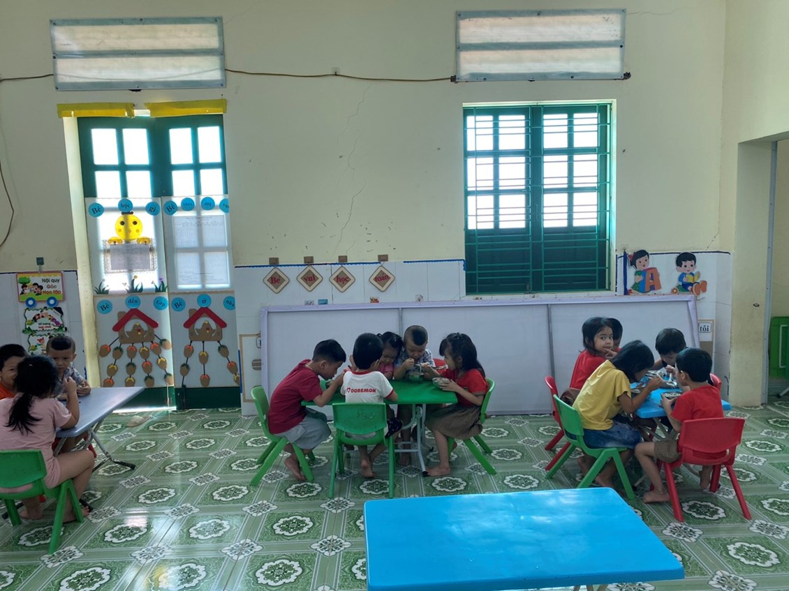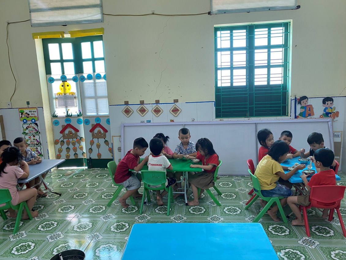 Giờ ăn trưa là một hoạt động quan trọng trong chế độ sinh hoạt hằng ngày của trẻ mầm non. Tại lớp, các bé được cô giáo hướng dẫn rửa tay sạch sẽ trước khi ăn, ngồi ngay ngắn và tự xúc ăn theo khả năng của mình. Trong bữa ăn, cô giáo luôn quan tâm, động viên để các con ăn ngon miệng, ăn hết suất, đồng thời nhẹ nhàng nhắc nhở trẻ giữ gìn vệ sinh, không nói chuyện to và biết mời cô, mời bạn trước khi ăn. Bữa ăn không chỉ giúp trẻ bổ sung đầy đủ dinh dưỡng để phát triển khỏe mạnh, mà còn rèn cho trẻ nề nếp, kỹ năng tự phục vụ và thói quen ăn uống khoa học. Với sự chăm sóc tận tình của cô giáo, giờ ăn trưa luôn diễn ra trong không khí vui vẻ, ấm áp, giúp các con cảm nhận được sự quan tâm và yêu thương mỗi ngày khi đến trường. 🌱