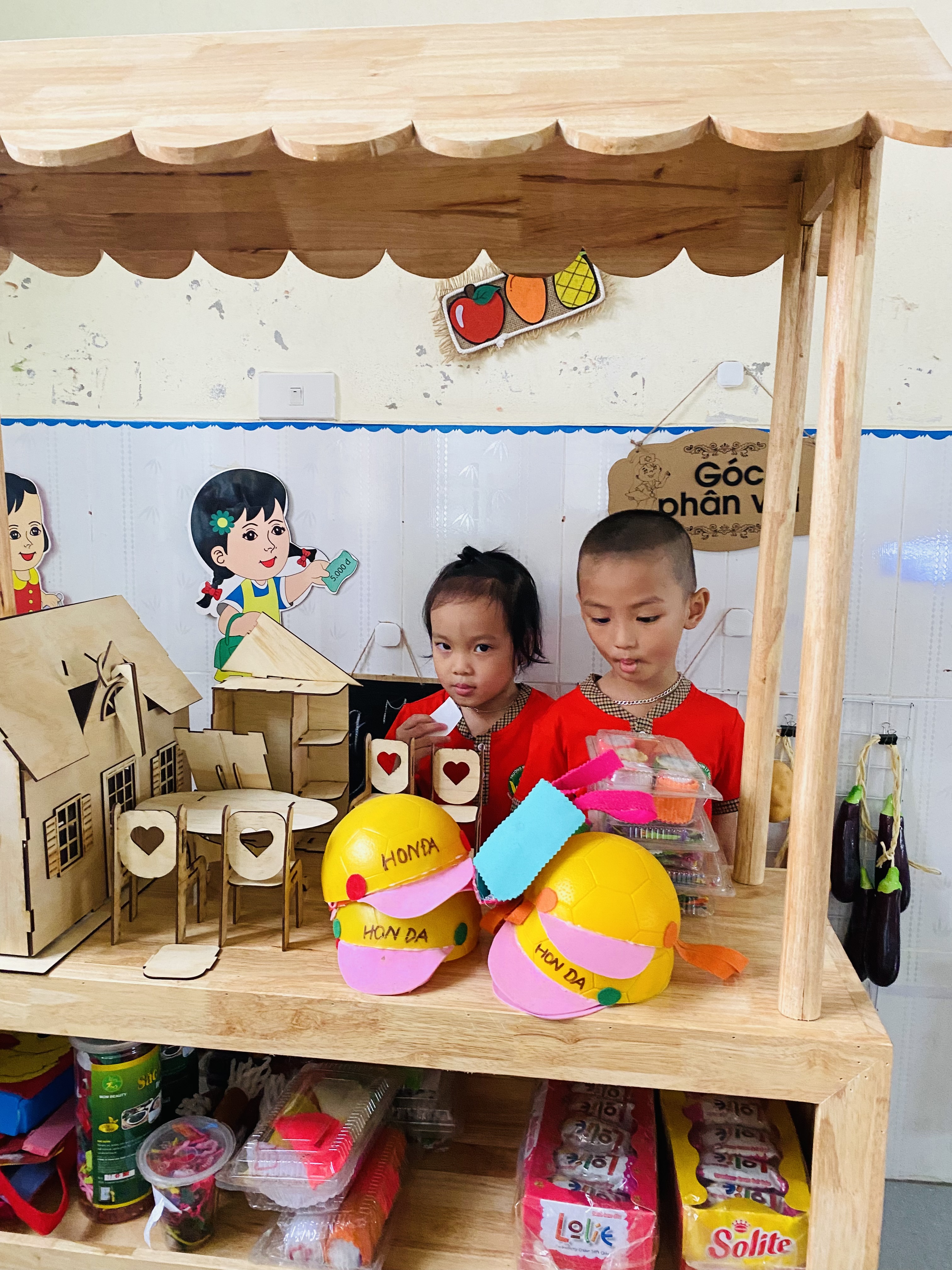 Hoạt động “chơi bán hàng” là một trò chơi đóng vai rất phù hợp với trẻ nhỏ, mang lại nhiều giá trị phát triển toàn diện: 1. Phát triển nhận thức Giúp trẻ nhận biết các đồ vật quen thuộc: rau, quả, bánh, sữa… Bước đầu hiểu được hoạt động mua – bán đơn giản trong cuộc sống. 2. Phát triển ngôn ngữ Trẻ học cách giao tiếp: chào hỏi, mời mua, nói lời cảm ơn. Tăng vốn từ và khả năng diễn đạt thông qua trò chơi. 3. Phát triển kỹ năng xã hội Trẻ biết chơi cùng bạn, chờ đến lượt, hợp tác với nhau. Hình thành hành vi giao tiếp lịch sự, mạnh dạn, tự tin hơn. 4. Phát triển tình cảm – cảm xúc Trẻ được nhập vai (người bán, người mua) nên rất hào hứng, vui vẻ. Tạo cảm giác thoải mái, giảm nhút nhát, tăng sự tự tin. 5. Phát triển vận động tinh Khi cầm, xếp, đưa – nhận đồ, trẻ rèn luyện sự khéo léo của đôi tay. 6. Giáo dục kỹ năng sống đơn giản Biết giữ gìn đồ chơi, sắp xếp gọn gàng “gian hàng”. Làm quen với hành vi tiêu dùng đơn giản (chọn đồ, trao đổi).