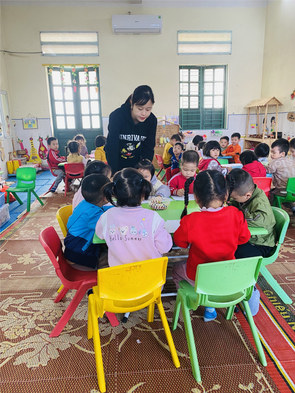 Giờ ăn trưa là một hoạt động quan trọng trong chế độ sinh hoạt hằng ngày của trẻ mầm non. Tại lớp, các bé được cô giáo hướng dẫn rửa tay sạch sẽ trước khi ăn, ngồi ngay ngắn và tự xúc ăn theo khả năng của mình. Trong bữa ăn, cô giáo luôn quan tâm, động viên để các con ăn ngon miệng, ăn hết suất, đồng thời nhẹ nhàng nhắc nhở trẻ giữ gìn vệ sinh, không nói chuyện to và biết mời cô, mời bạn trước khi ăn. Bữa ăn không chỉ giúp trẻ bổ sung đầy đủ dinh dưỡng để phát triển khỏe mạnh, mà còn rèn cho trẻ nề nếp, kỹ năng tự phục vụ và thói quen ăn uống khoa học. Với sự chăm sóc tận tình của cô giáo, giờ ăn trưa luôn diễn ra trong không khí vui vẻ, ấm áp, giúp các con cảm nhận được sự quan tâm và yêu thương mỗi ngày khi đến trường. 🌱