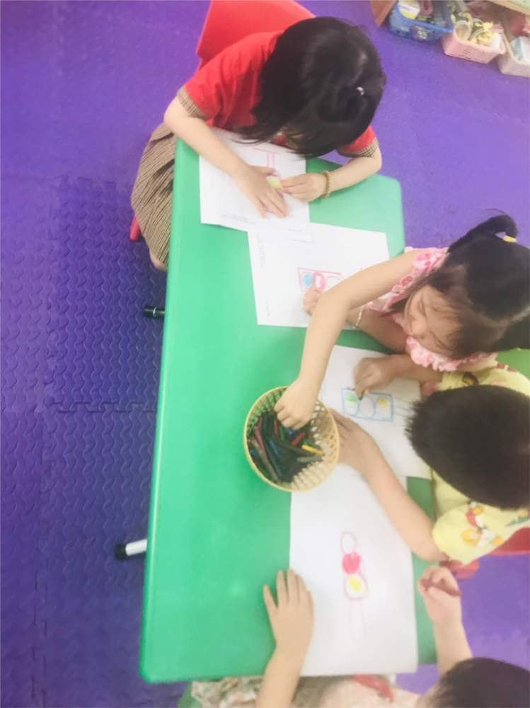 Giờ hoạt động tạo hình vẽ đèn giao thông của các bé lớp 4T3.