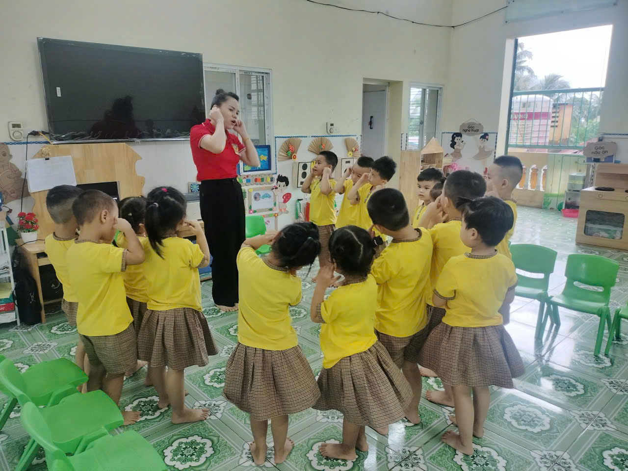 Trong tiết vận động vui nhộn hôm nay, các bé lớp 4T3 của Trường Mầm non Lý Học đã cùng cô tham gia bài vận động theo nhạc “Cái Mũi”. Với giai điệu vui tươi, các con vừa hát vừa kết hợp những động tác minh họa đáng yêu như chỉ mũi, xoa má, vỗ tay theo nhịp…Hoạt động giúp trẻ phát triển khả năng vận động, rèn luyện sự nhanh nhẹn, khéo léo và ghi nhớ các bộ phận trên cơ thể. Các bé rất hào hứng, cười nói rộn ràng và thể hiện sự tự tin khi tham gia cùng cô và các bạn. Giờ vận động không chỉ giúp các con rèn sức khỏe mà còn mang đến niềm vui, năng lượng tích cực cho một ngày học tập thật tràn đầy hứng khởi!
