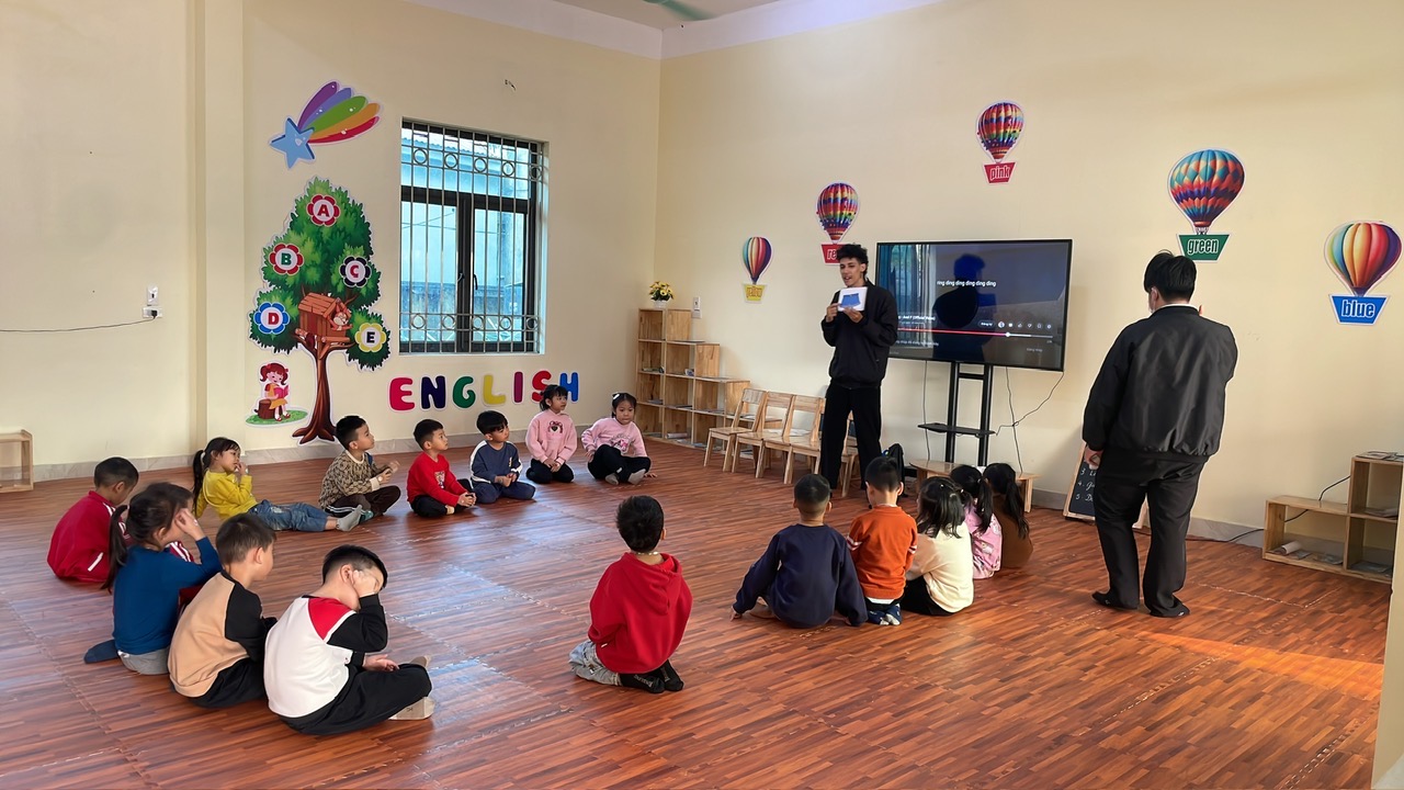 Giờ học tiếng Anh – Khơi nguồn đam mê ngôn ngữ cho bé! Tiếng Anh là ngôn ngữ quốc tế, mở ra cánh cửa tri thức và hội nhập. Ở lứa tuổi 5, trẻ có khả năng tiếp thu ngôn ngữ rất nhanh thông qua các hoạt động vui chơi, hát, kể chuyện và tương tác. Giờ học tiếng Anh tại trường mầm non không chỉ giúp trẻ làm quen với ngôn ngữ mới mà còn phát triển khả năng nghe – nói tự nhiên, tăng sự tự tin và hứng thú học tập. Hãy cùng đồng hành để tạo nền tảng vững chắc cho con em chúng ta ngay từ hôm nay!
