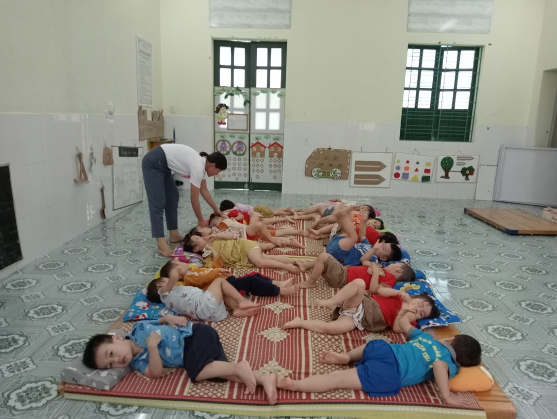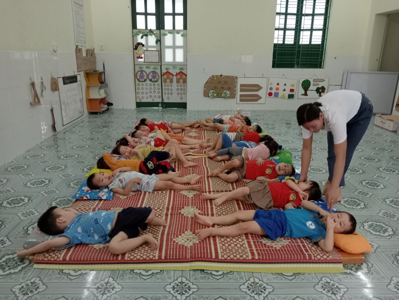 “Trẻ em như búp trên cành Biết ăn, ngủ, biết học hành là ngoan”. Nếu trẻ đến trường chỉ được ăn no, học hành và vui chơi thì chưa đủ, mà trẻ cần phải được các cô giáo hướng dẫn, tổ chức cho trẻ ngủ đủ giờ và đủ giấc. Đồng thời cần rèn cho trẻ có thói quen ngủ đúng giờ. Như vậy cơ thể trẻ sẽ được khoẻ mạnh, hoạt động vui chơi tích cực và học tập tiếp thu bài tốt. Biết được đặc điểm tâm sinh lý của trẻ và hiểu được tầm quan trọng của giấc ngủ cho nên việc tổ chức giấc ngủ cho trẻ trong trường mầm non là vô cùng cần thiết. Có như vậy chúng ta mới có những chủ nhân tương lai thật khỏe mạnh, thông minh và sáng tạo. Sau đây là một số hình ảnh giờ ngủ của các bé lớp 3T3.