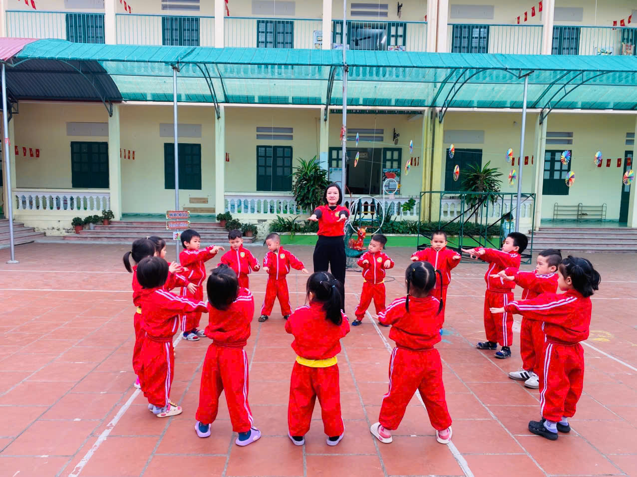 Thể dục sáng là một hoạt động rất quan trọng trong chế độ sinh hoạt hằng ngày của trẻ nhà trẻ, mang lại nhiều lợi ích thiết thực: 1. Phát triển thể chất Giúp cơ thể trẻ khỏe mạnh, tăng cường sức đề kháng. Phát triển các nhóm cơ, xương khớp, giúp trẻ nhanh nhẹn, dẻo dai hơn. Hỗ trợ phát triển chiều cao và thể lực. 2. Tạo tinh thần vui vẻ, hứng khởi Giúp trẻ tỉnh táo, sảng khoái khi bắt đầu một ngày mới. Tạo tâm lý vui vẻ, giảm quấy khóc, giúp trẻ dễ hòa nhập với lớp học. 3. Hình thành thói quen tốt Rèn cho trẻ thói quen vận động thường xuyên. Giáo dục trẻ nề nếp sinh hoạt khoa học, đúng giờ. 4. Phát triển kỹ năng vận động Giúp trẻ làm quen với các động tác cơ bản: đi, chạy, nhảy, giơ tay, cúi người… Tăng khả năng phối hợp tay – chân và sự khéo léo. 5. Tăng khả năng giao tiếp, hòa đồng Trẻ tham gia cùng cô và các bạn, từ đó mạnh dạn hơn. Hình thành tinh thần tập thể, biết làm theo hiệu lệnh.