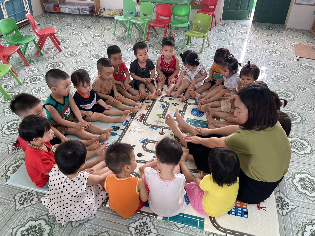 Các bạn nhỏ ơi? Hôm nay lớp nhà trẻ 3 của chúng tớ sau khi ngủ trưa xong chúng tớ được ăn chiều và bây giờ chúng tớ được cùng cô và các bạn tham gia những trò chơi dân gian được làm quen và học những bài thơ như nu na nữ nống. Học mà chơi, chơi mà học các con học rất vui vẻ và hào hứng ngoài ra các con còn biết đôi bàn chân xinh xắn của mình có sạch không và nếu bạn nào bẩn thì phải đi rửa sạch ngay đấy. Hãy cùng đến với lớp NT3 nhé