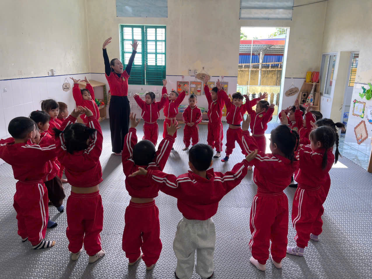 Hoạt động thể dục sáng là một phần quan trọng trong sinh hoạt hằng ngày của trẻ mầm non. Những động tác vận động đơn giản, vui nhộn theo nhạc giúp các bé khởi động cơ thể, rèn luyện sức khỏe và tạo tinh thần vui tươi để bắt đầu một ngày học tập đầy hứng khởi. Thông qua hoạt động này, trẻ được phát triển thể chất, tăng cường sự nhanh nhẹn và hình thành thói quen rèn luyện sức khỏe mỗi ngày. Những nụ cười rạng rỡ của các con trong giờ thể dục sáng đã mang lại một khởi đầu thật năng động và tràn đầy năng lượng. 🌱