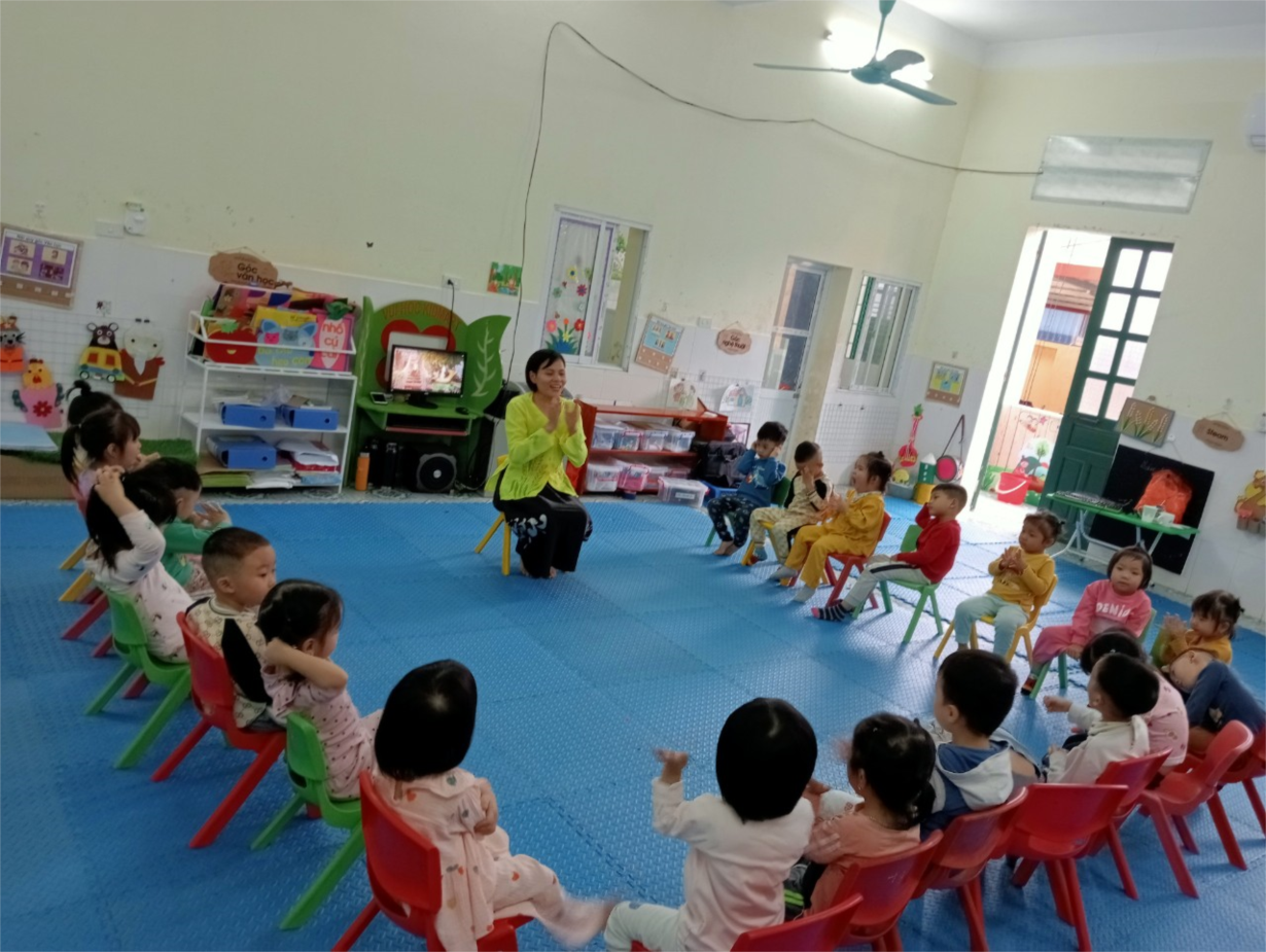 “Tổ chức hoạt động âm nhạc theo hướng tiếp cận đa văn hóa” cho trẻ giúp trẻ tích cực tham gia hoạt động âm nhạc cùng cô. Trẻ được trải nghiệm với các nhạc cụ, dụng cụ âm nhạc . Trẻ được tham gia theo nhóm tích cực, tập trung trong quá trình học với tâm trạng vui tươi, sảng khoái thể hiện sự hồn nhiên của trẻ. Sau đây là một số hình ảnh hoạt động của cô trò lớp 3T2.
