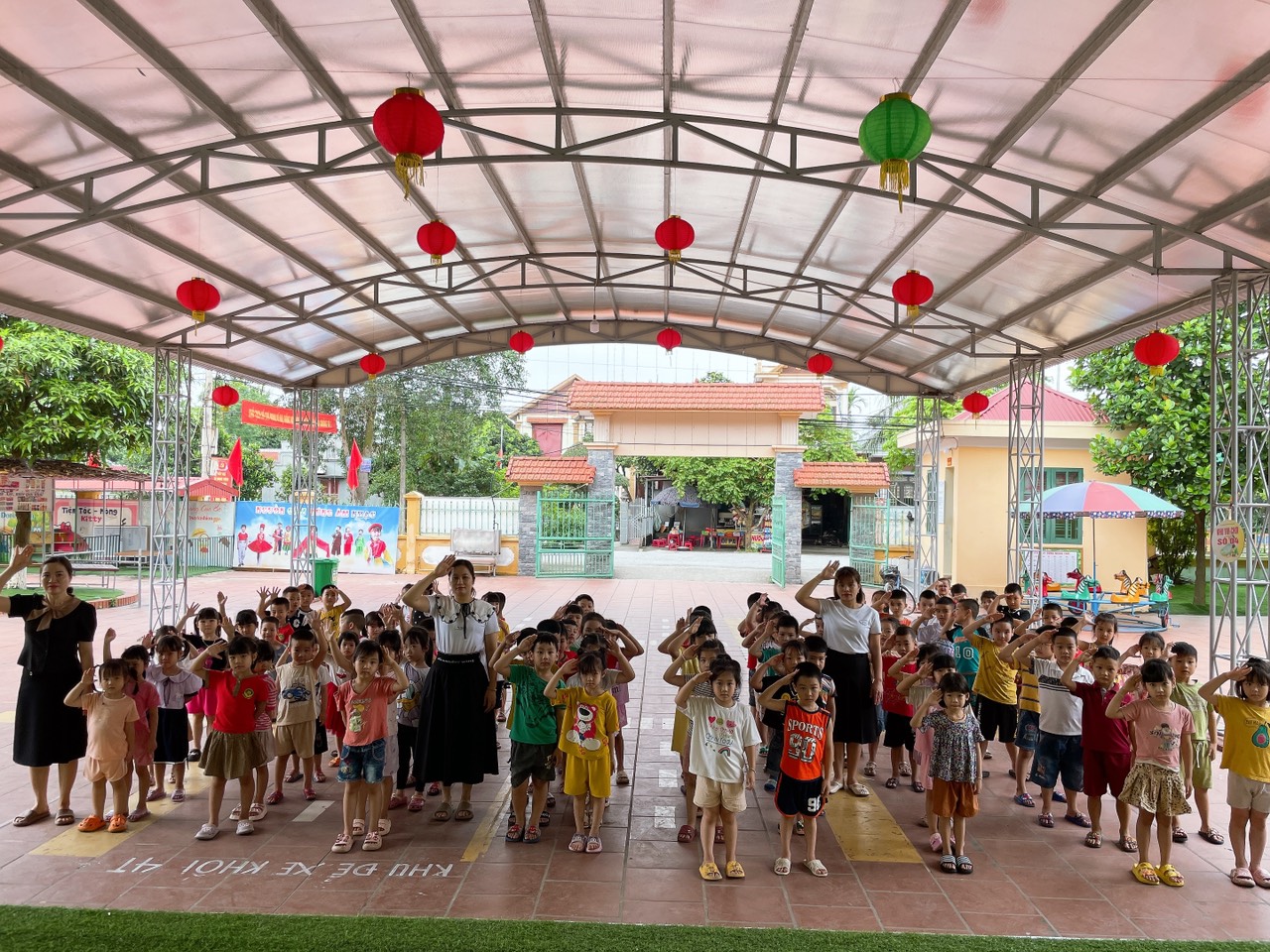 Vào sáng thứ 2 ngày 6/5/20224. Cô và trò trường mầm non Lý Học tổ chức lễ chào cờ đầu tuần. Trong không khí vui tươi phấn khởi, hòa chung không khí chào mừng 70 năm ngày chiến thắng Điện Biên Phủ.