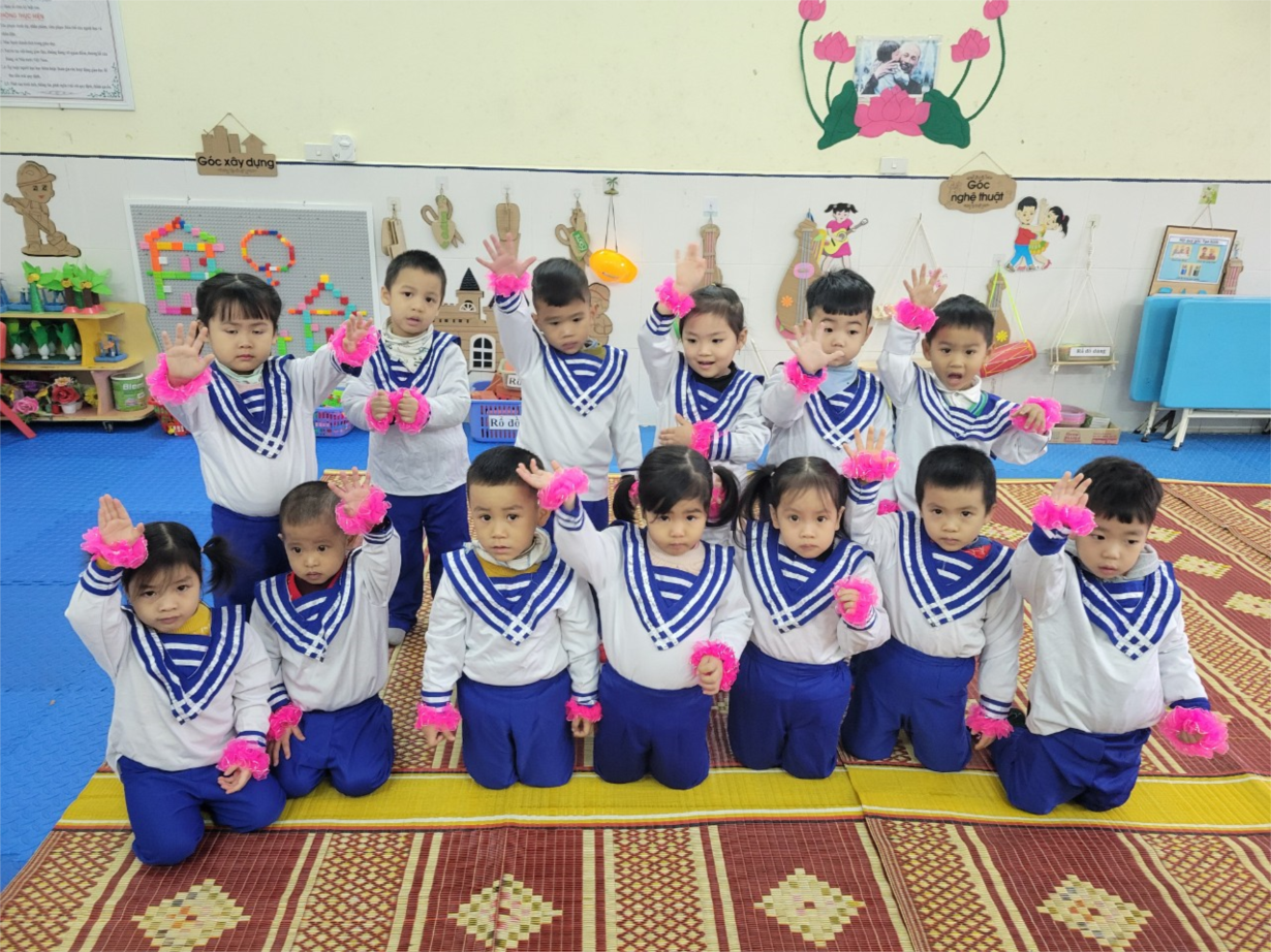 Được khoác trên mình những bộ trang phục chú bộ đội hải quân, các bạn nhỏ được hóa thân thành các cô, các chú bộ đội nhí vô cùng đáng yêu, ngộ nghĩnh, cùng hát múa những khúc ca về chú bộ đội, niềm tự hào về truyền thống anh bộ độ Cụ Hồ đang ánh lên trên trong những đôi mắt tròn xoe, thơ ngây...Đây thực sự là buổi trải nghiệm mà các bạn nhỏ vô cùng thích thú. Chính từ những hoạt động đó, đã khơi gợi trong các “Công dân nhỏ tuổi” những tình cảm và nhận thức đầu tiên về tình yêu nghề nghiệp, yêu cô chú bộ đội và yêu quê hương đất nước. Dưới đây là một số hình ảnh của chương trình "Chiến sĩ tí hon" của các bé lớp 3t1