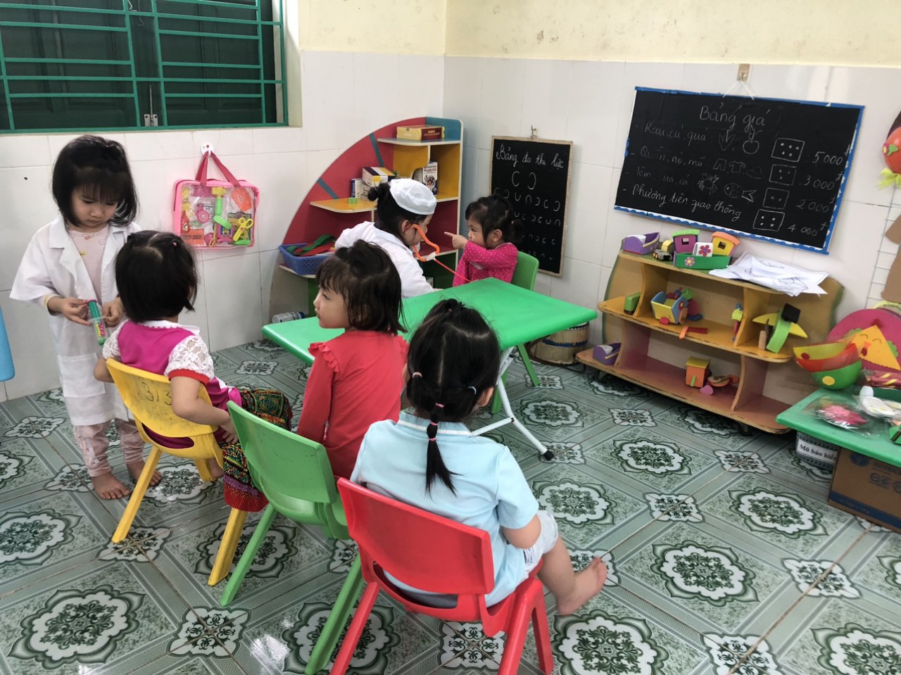 Hoạt động “chơi bán hàng” là một trò chơi đóng vai rất phù hợp với trẻ nhỏ, mang lại nhiều giá trị phát triển toàn diện: 1. Phát triển nhận thức Giúp trẻ nhận biết các đồ vật quen thuộc: rau, quả, bánh, sữa… Bước đầu hiểu được hoạt động mua – bán đơn giản trong cuộc sống. 2. Phát triển ngôn ngữ Trẻ học cách giao tiếp: chào hỏi, mời mua, nói lời cảm ơn. Tăng vốn từ và khả năng diễn đạt thông qua trò chơi. 3. Phát triển kỹ năng xã hội Trẻ biết chơi cùng bạn, chờ đến lượt, hợp tác với nhau. Hình thành hành vi giao tiếp lịch sự, mạnh dạn, tự tin hơn. 4. Phát triển tình cảm – cảm xúc Trẻ được nhập vai (người bán, người mua) nên rất hào hứng, vui vẻ. Tạo cảm giác thoải mái, giảm nhút nhát, tăng sự tự tin. 5. Phát triển vận động tinh Khi cầm, xếp, đưa – nhận đồ, trẻ rèn luyện sự khéo léo của đôi tay. 6. Giáo dục kỹ năng sống đơn giản Biết giữ gìn đồ chơi, sắp xếp gọn gàng “gian hàng”. Làm quen với hành vi tiêu dùng đơn giản (chọn đồ, trao đổi).