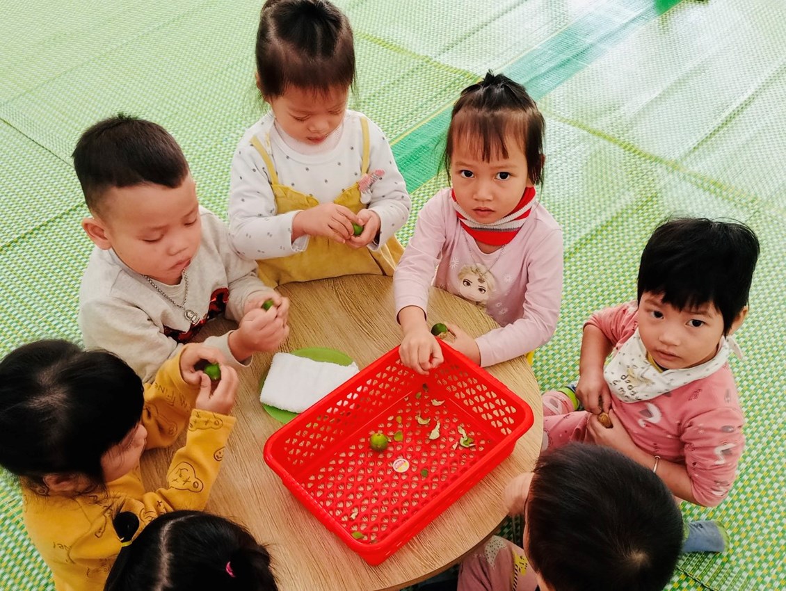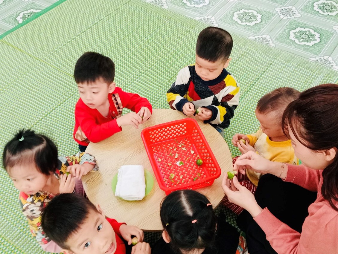 Hoạt động khám phá quả quất của các bé lớp 3T3