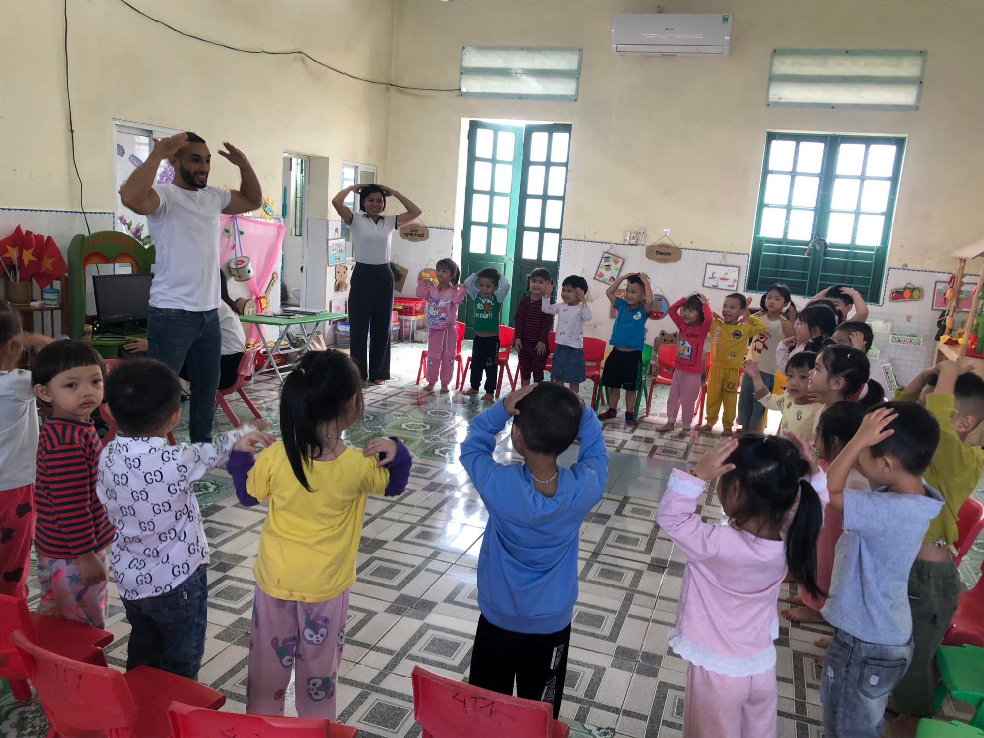 Hoạt động thể dục sáng là một phần quan trọng trong sinh hoạt hằng ngày của trẻ mầm non. Những động tác vận động đơn giản, vui nhộn theo nhạc giúp các bé khởi động cơ thể, rèn luyện sức khỏe và tạo tinh thần vui tươi để bắt đầu một ngày học tập đầy hứng khởi. Thông qua hoạt động này, trẻ được phát triển thể chất, tăng cường sự nhanh nhẹn và hình thành thói quen rèn luyện sức khỏe mỗi ngày. Những nụ cười rạng rỡ của các con trong giờ thể dục sáng đã mang lại một khởi đầu thật năng động và tràn đầy năng lượng. 🌱