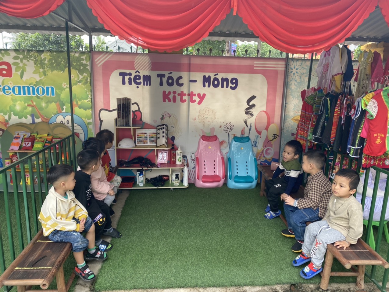 Hoạt động “chơi bán hàng” là một trò chơi đóng vai rất phù hợp với trẻ nhỏ, mang lại nhiều giá trị phát triển toàn diện: 1. Phát triển nhận thức Giúp trẻ nhận biết các đồ vật quen thuộc: rau, quả, bánh, sữa… Bước đầu hiểu được hoạt động mua – bán đơn giản trong cuộc sống. 2. Phát triển ngôn ngữ Trẻ học cách giao tiếp: chào hỏi, mời mua, nói lời cảm ơn. Tăng vốn từ và khả năng diễn đạt thông qua trò chơi. 3. Phát triển kỹ năng xã hội Trẻ biết chơi cùng bạn, chờ đến lượt, hợp tác với nhau. Hình thành hành vi giao tiếp lịch sự, mạnh dạn, tự tin hơn. 4. Phát triển tình cảm – cảm xúc Trẻ được nhập vai (người bán, người mua) nên rất hào hứng, vui vẻ. Tạo cảm giác thoải mái, giảm nhút nhát, tăng sự tự tin. 5. Phát triển vận động tinh Khi cầm, xếp, đưa – nhận đồ, trẻ rèn luyện sự khéo léo của đôi tay. 6. Giáo dục kỹ năng sống đơn giản Biết giữ gìn đồ chơi, sắp xếp gọn gàng “gian hàng”. Làm quen với hành vi tiêu dùng đơn giản (chọn đồ, trao đổi).