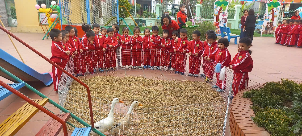 Hoạt động ngoài trời quan sát con vịt của các bé lớp 3T2.