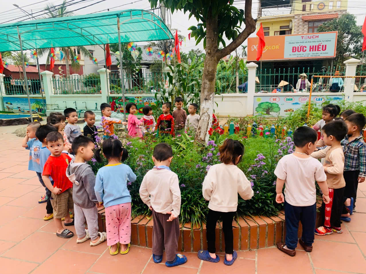 Đối với lứa tuổi mầm non “Học mà chơi – Chơi mà học” thì hoạt động vui chơi là một trong những hoạt động chủ đạo của trẻ mầm non, nhằm giúp trẻ thỏa mãn nhu cầu vui chơi và phát triển toàn diện ở trẻ. Bên cạnh đó, hoạt động vui chơi còn là phương tiện làm phong phú vốn hiểu biết, kinh nghiệm của trẻ về thế giới xung quanh. Trong những hoạt động vui chơi thì hoạt động ngoài trời là một trong những hoạt động vui chơi mà trẻ hứng thú nhất, mang lại cho trẻ nhiều niềm vui và kiến thức cần thiết về thế giới xung quanh trẻ. Trẻ nhận thức được thế giới xung quanh bằng cách tiếp xúc, tìm hiểu, khám phá và quan tâm đến những gì xảy ra ở cuộc sống xung quanh mình. Qua hoạt động ngoài trời trẻ thỏa mãn nhu cầu hoạt động, nhu cầu tìm hiểu, khám phá của bản thân. Hoạt động vui chơi ngoài trời tạo cho trẻ sự nhanh nhẹn và hứng thú với môi trường tự nhiên đồng thời trẻ tự tin, mạnh dạn trong cuộc sống.Khi tham gia hoạt động ngoài trời trẻ còn được hít thở bầu không khí trong lành, được quan sát thế giới xung quanh mình và được tìm hiểu về sự tồn tại của những sự vật hiện tượng từ quen thuộc đến lạ lẫm đối với trẻ, trẻ được tự do hoạt động theo ý thích của bản thân, từ đó giúp cho trẻ tích lũy được nhiều kinh nghiệm, kỹ năng sống cũng như rèn luyện sự khéo léo và nhanh nhạy của trẻ. sau đây là một số hình ảnh các bé lớp 3T2 dạo chơi sân trường, quan sát bồn hoa.