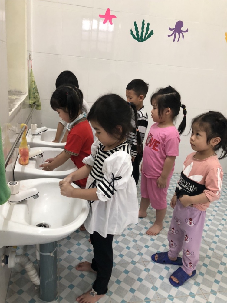 Hoạt động rửa tay của các bé lớp 3T2.