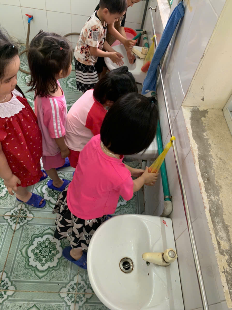 Hoạt động rửa tay của các bé lớp 4T1