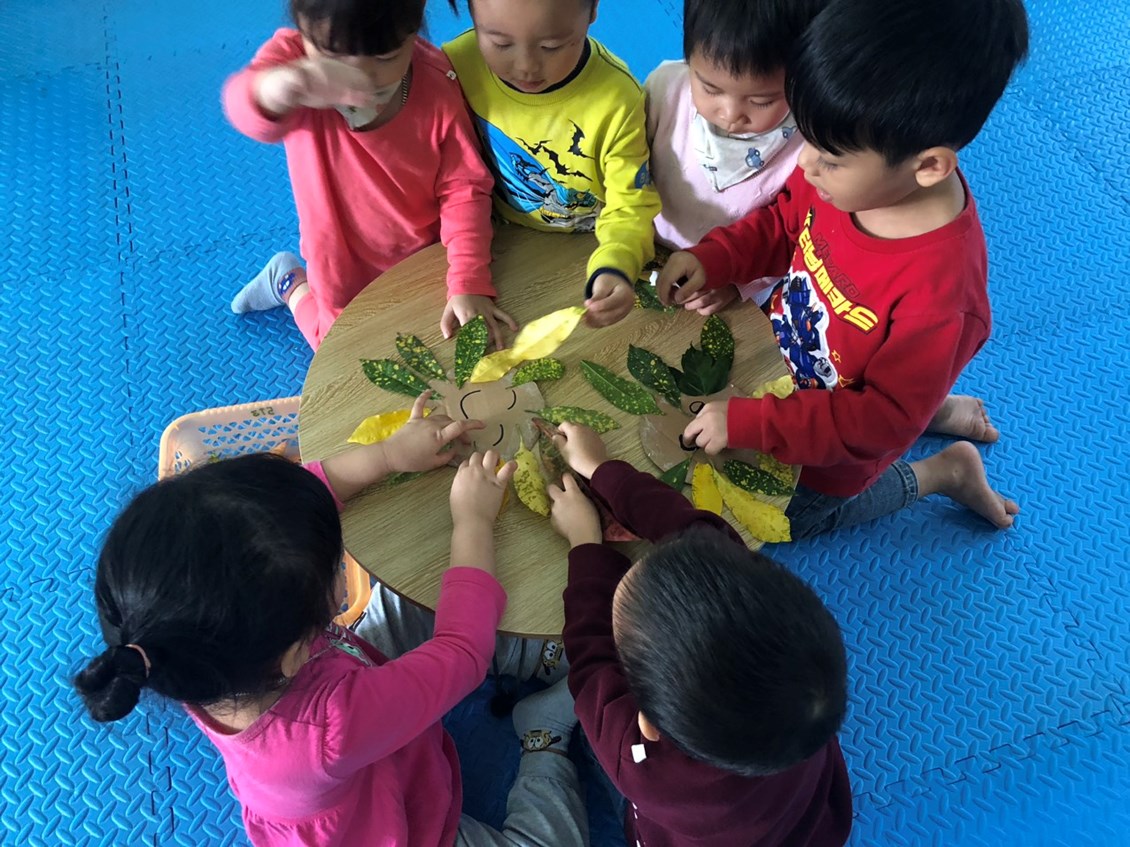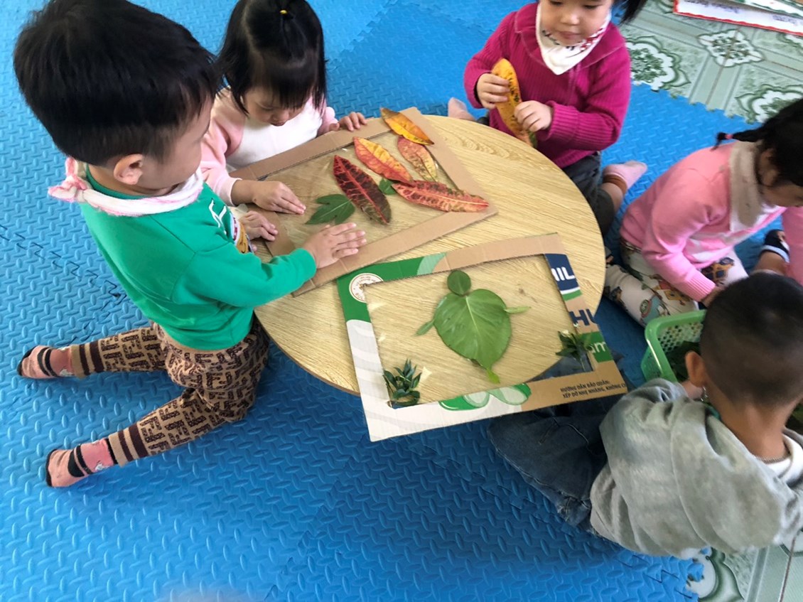 Hoạt động tạo hình " Sáng tạo từ lá cây" của các bé lớp 3T2