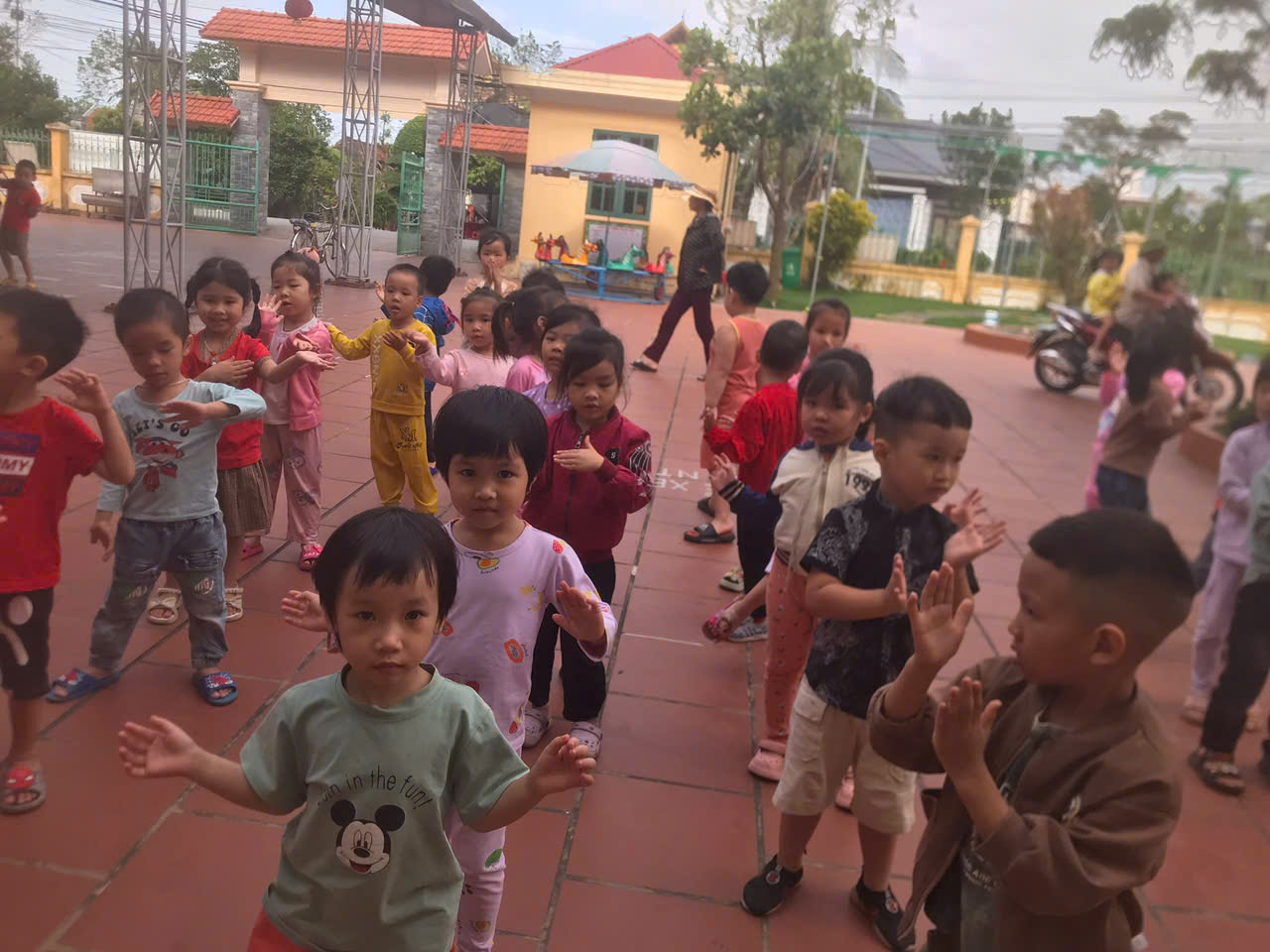 Hoạt động thể dục sáng là một phần quan trọng trong sinh hoạt hằng ngày của trẻ mầm non. Những động tác vận động đơn giản, vui nhộn theo nhạc giúp các bé khởi động cơ thể, rèn luyện sức khỏe và tạo tinh thần vui tươi để bắt đầu một ngày học tập đầy hứng khởi. Thông qua hoạt động này, trẻ được phát triển thể chất, tăng cường sự nhanh nhẹn và hình thành thói quen rèn luyện sức khỏe mỗi ngày. Những nụ cười rạng rỡ của các con trong giờ thể dục sáng đã mang lại một khởi đầu thật năng động và tràn đầy năng lượng. 🌱