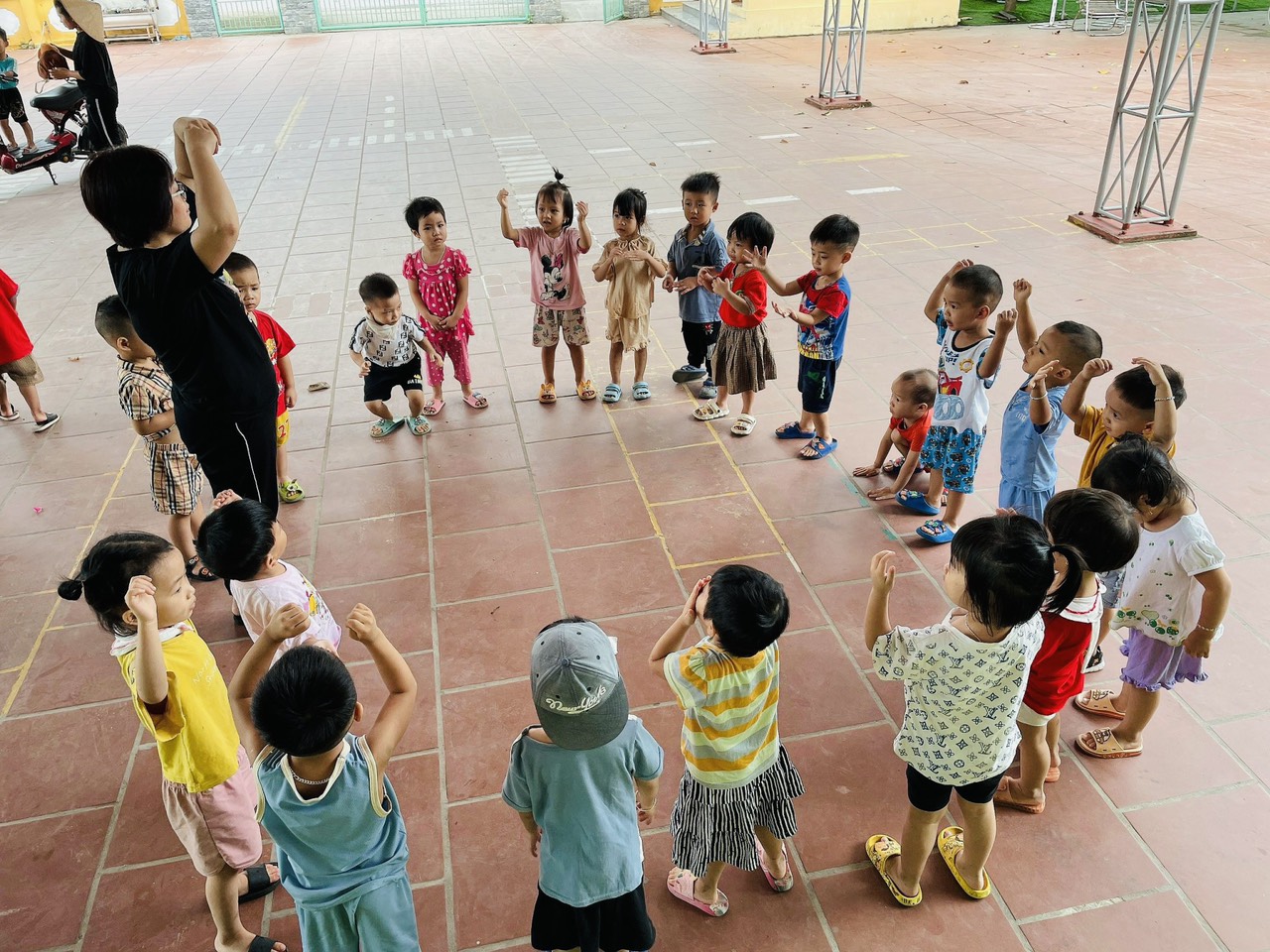 Hoạt động thể dục sáng là một phần quan trọng trong sinh hoạt hằng ngày của trẻ mầm non. Những động tác vận động đơn giản, vui nhộn theo nhạc giúp các bé khởi động cơ thể, rèn luyện sức khỏe và tạo tinh thần vui tươi để bắt đầu một ngày học tập đầy hứng khởi. Thông qua hoạt động này, trẻ được phát triển thể chất, tăng cường sự nhanh nhẹn và hình thành thói quen rèn luyện sức khỏe mỗi ngày. Những nụ cười rạng rỡ của các con trong giờ thể dục sáng đã mang lại một khởi đầu thật năng động và tràn đầy năng lượng. 🌱