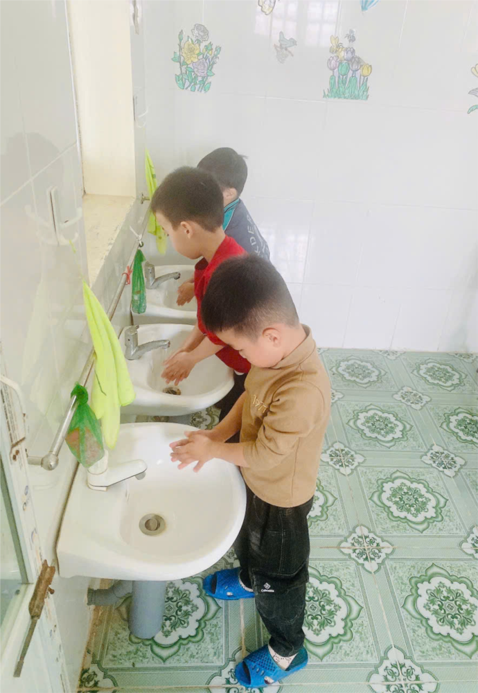 Hoạt động vệ sinh tay của các bé lớp 4T3