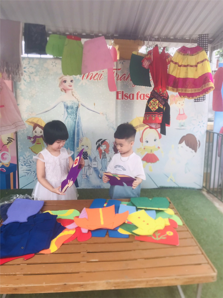 Hoạt động “chơi bán hàng” là một trò chơi đóng vai rất phù hợp với trẻ nhỏ, mang lại nhiều giá trị phát triển toàn diện: 1. Phát triển nhận thức Giúp trẻ nhận biết các đồ vật quen thuộc: rau, quả, bánh, sữa… Bước đầu hiểu được hoạt động mua – bán đơn giản trong cuộc sống. 2. Phát triển ngôn ngữ Trẻ học cách giao tiếp: chào hỏi, mời mua, nói lời cảm ơn. Tăng vốn từ và khả năng diễn đạt thông qua trò chơi. 3. Phát triển kỹ năng xã hội Trẻ biết chơi cùng bạn, chờ đến lượt, hợp tác với nhau. Hình thành hành vi giao tiếp lịch sự, mạnh dạn, tự tin hơn. 4. Phát triển tình cảm – cảm xúc Trẻ được nhập vai (người bán, người mua) nên rất hào hứng, vui vẻ. Tạo cảm giác thoải mái, giảm nhút nhát, tăng sự tự tin. 5. Phát triển vận động tinh Khi cầm, xếp, đưa – nhận đồ, trẻ rèn luyện sự khéo léo của đôi tay. 6. Giáo dục kỹ năng sống đơn giản Biết giữ gìn đồ chơi, sắp xếp gọn gàng “gian hàng”. Làm quen với hành vi tiêu dùng đơn giản (chọn đồ, trao đổi).