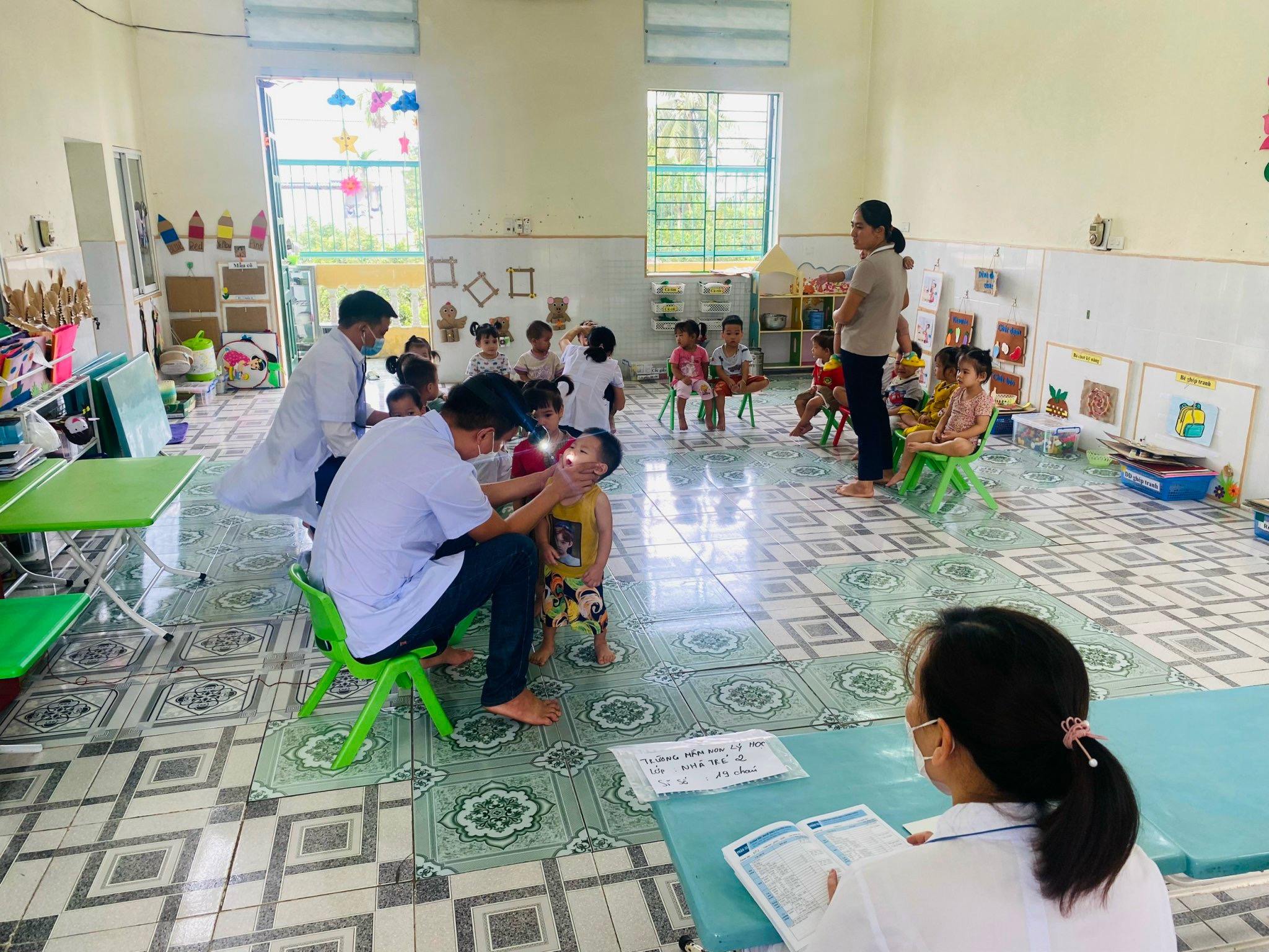 Thực hiện kế hoạch chăm sóc sức khỏe năm học 2023 - 2024, đúng 15h thứ 3 ngày 10/10/2023 Đa khoa đã khám sức khỏe cho các cháu lần 1 năm học 2023 - 2024. Tại phòng học lớp nhà trẻ 2 các cháu đã được khám tổng quát về mắt, tai - mũi - họng, răng - hàm - mặt, hô hấp , tuần hoàn, thần kinh, lâm sàng... Cac bạn nhỏ trong lớp đã rất "hợp tác", bạn nào cũng ngoan ngoãn, k khóc nhè để các khám cho đấy. Cùng ngắm nhìn hình ảnh của các cháu trong buổi khám sức khỏe nhé.