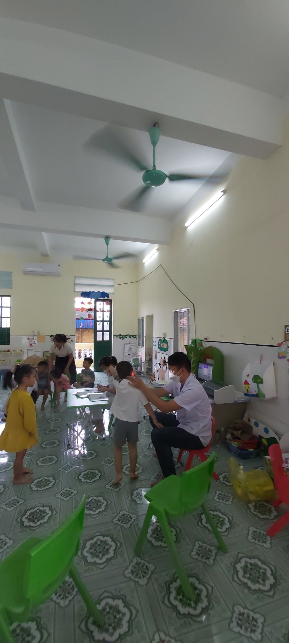 Khám sức khỏe tổng quát định kỳ cho bé có vai trò rất quan trọng, giúp cha mẹ nắm rõ tình hình phát triển thể chất như các chỉ số chiều cao, cân nặng, chức năng hô hấp, thính giác, thị giác,... và cả sự phát triển não bộ của bé. Một số hình ảnh các bé lớp 3t1 trong buổi khám sức khỏe định kỳ lần 1 năm học 2023- 2024