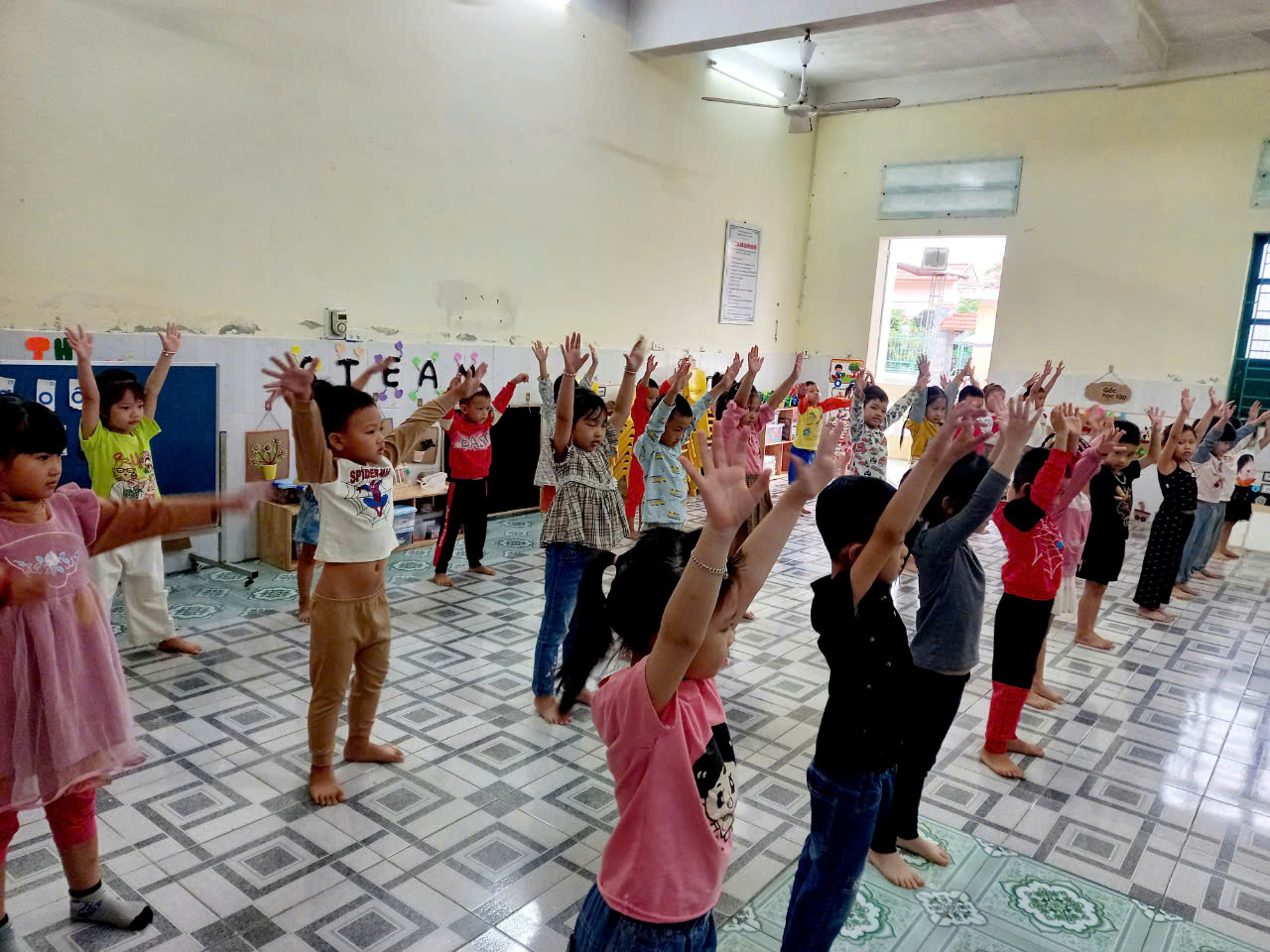 Hoạt động thể dục sáng là một phần quan trọng trong sinh hoạt hằng ngày của trẻ mầm non. Những động tác vận động đơn giản, vui nhộn theo nhạc giúp các bé khởi động cơ thể, rèn luyện sức khỏe và tạo tinh thần vui tươi để bắt đầu một ngày học tập đầy hứng khởi. Thông qua hoạt động này, trẻ được phát triển thể chất, tăng cường sự nhanh nhẹn và hình thành thói quen rèn luyện sức khỏe mỗi ngày. Những nụ cười rạng rỡ của các con trong giờ thể dục sáng đã mang lại một khởi đầu thật năng động và tràn đầy năng lượng. 🌱