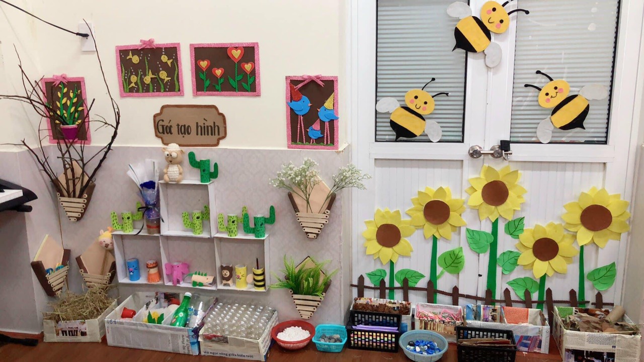 Ở góc chơi này chúng tớ tha hồ thỏa sức sáng tạo nhé. các bạn có thể tô vẽ, xé dán, làm tranh tùy ý thích của các bạn. Từ những đồ dùng có sẵn trong góc các bạn có thể tạo ra được rất nhiều hình xinh đẹp theo ý thích và theo chủ đề chơi của các bạn. Mời các bạn ghé thăm góc tạo hình của chúng tớ nhé