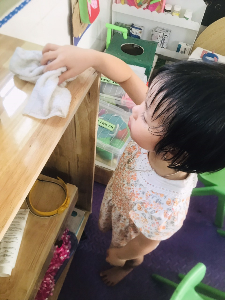 Trong các giờ học như hoạt động ngoài trời, hoạt động góc, hoạt động học, hoạt động chiều… thì hoạt động lao động là một bộ phận quan trọng của giáo dục phát triển toàn diện, nhằm hình thành ở trẻ những phẩm chất của người lao động: yêu lao động, quý trọng người lao động, giúp trẻ nắm được các kỹ năng lao động đơn giản phục vụ cho sinh hoạt và chuẩn bị sau này cho trẻ tham gia vào đời sống lao động. Giáo dục lao động có ý nghĩa quan trọng đối với các mặt giáo dục khác và có quan hệ mật thiết với chúng, giúp cho quá trình giáo dục nhân cách của trẻ phát triển toàn diện. Giáo dục lao động đối với trẻ mầm non không chỉ là nhiệm vụ của các cô giáo giao cho trẻ, mà lao động phù hợp với sức khoẻ và tâm lí lứa tuổi có ý nghĩa giáo dục thực sự, trẻ mới cảm thấy lao động là khó khăn và sự cần thiết phải lao động, phải có sự nỗ lực hoàn thành công việc được giao. Ngoài việc tổ chức cho trẻ thu dọn dụng cụ học tập, lau dọn các góc chơi, các cô còn tổ chức cho trẻ nhặt rác, nhổ cỏ ở vườn hoa, tưới cây, lau lá... Cô luôn tạo cơ hội cho trẻ tự lựa chọn và giải quyết những công việc trẻ thích. Qua hoạt động lao động tạo cho trẻ sự nhanh nhẹn và thích ứng với môi trường tự nhiên đồng thời trẻ tự tin, mạnh dạn hơn trong cuộc sống. Bên cạnh đó, rèn kĩ năng lao động tự phục vụ cho trẻ ở trường mầm non là việc làm hết sức quan trọng vì lao động phục vụ bản thân là một trong những kỹ năng quan trọng thúc đẩy trẻ hoàn thiện mình một cách tốt nhất, nó sẽ giúp cho trẻ hình thành nhân cách, phẩm chất đạo đức và tính tự lập sau này. Hiểu được tầm quan trọng của hoạt động giáo dục lao động đối với trẻ, tôi luôn tổ chức các buổi hoạt động lồng ghép vào buổi chiều thứ 4 hàng tuần, và dưới đây là một số hình ảnh về các buổi lao động của trẻ tại lớp 4 Tuổi 3 trường mầm non Lý Học
