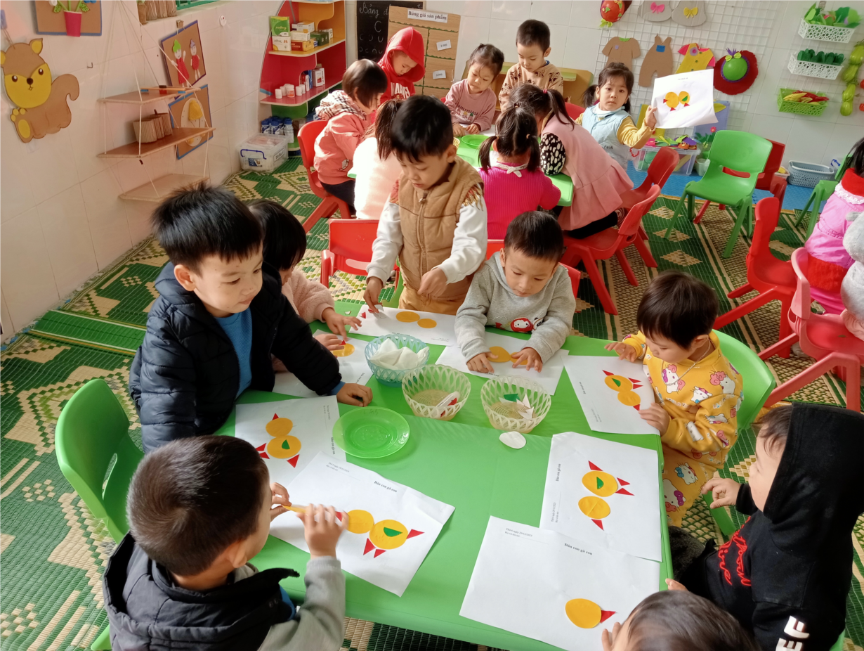Tạo hình dán còn gà con các bé lớp 3T2
