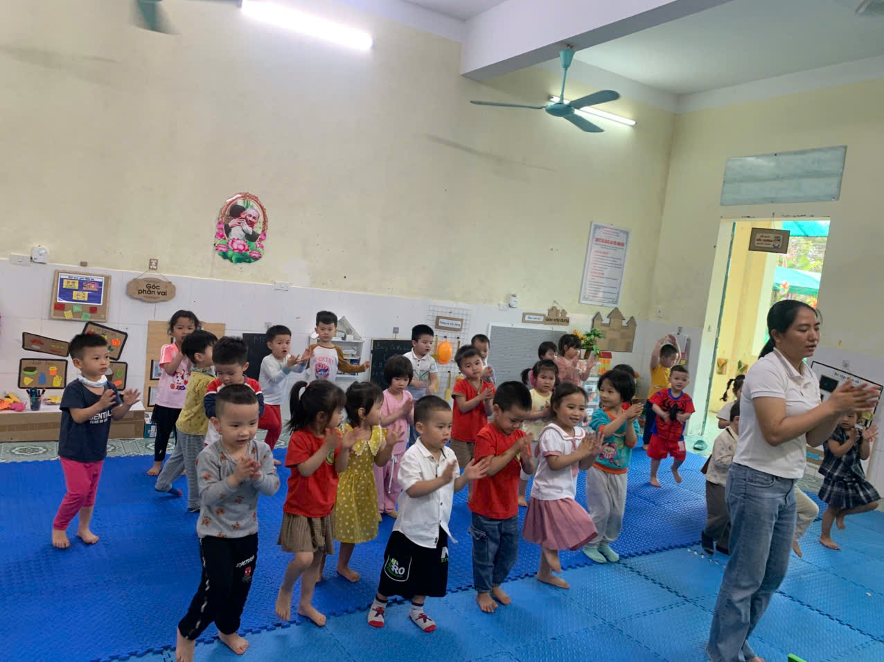 Hoạt động thể dục sáng là một phần quan trọng trong sinh hoạt hằng ngày của trẻ mầm non. Những động tác vận động đơn giản, vui nhộn theo nhạc giúp các bé khởi động cơ thể, rèn luyện sức khỏe và tạo tinh thần vui tươi để bắt đầu một ngày học tập đầy hứng khởi. Thông qua hoạt động này, trẻ được phát triển thể chất, tăng cường sự nhanh nhẹn và hình thành thói quen rèn luyện sức khỏe mỗi ngày. Những nụ cười rạng rỡ của các con trong giờ thể dục sáng đã mang lại một khởi đầu thật năng động và tràn đầy năng lượng. 🌱