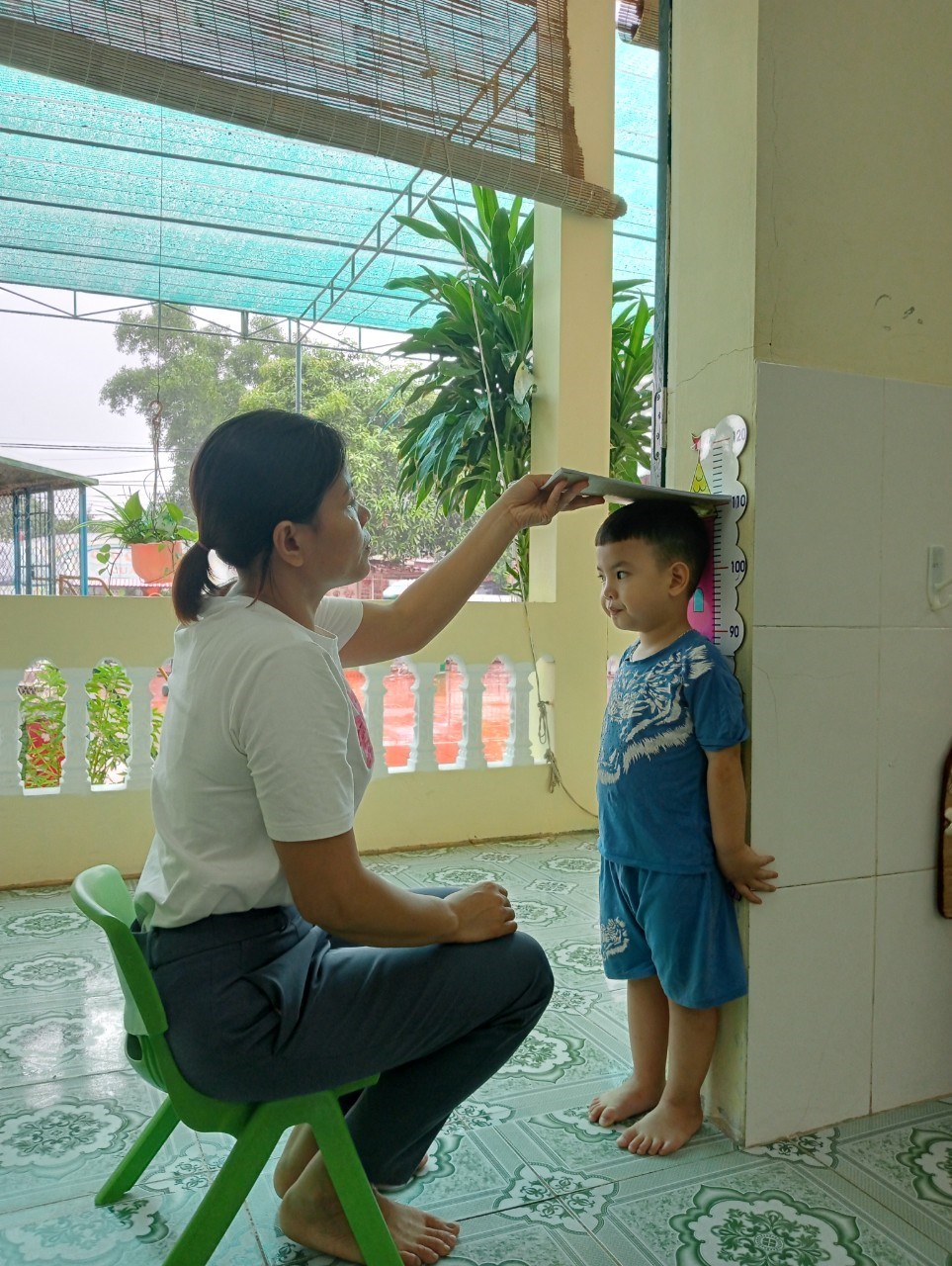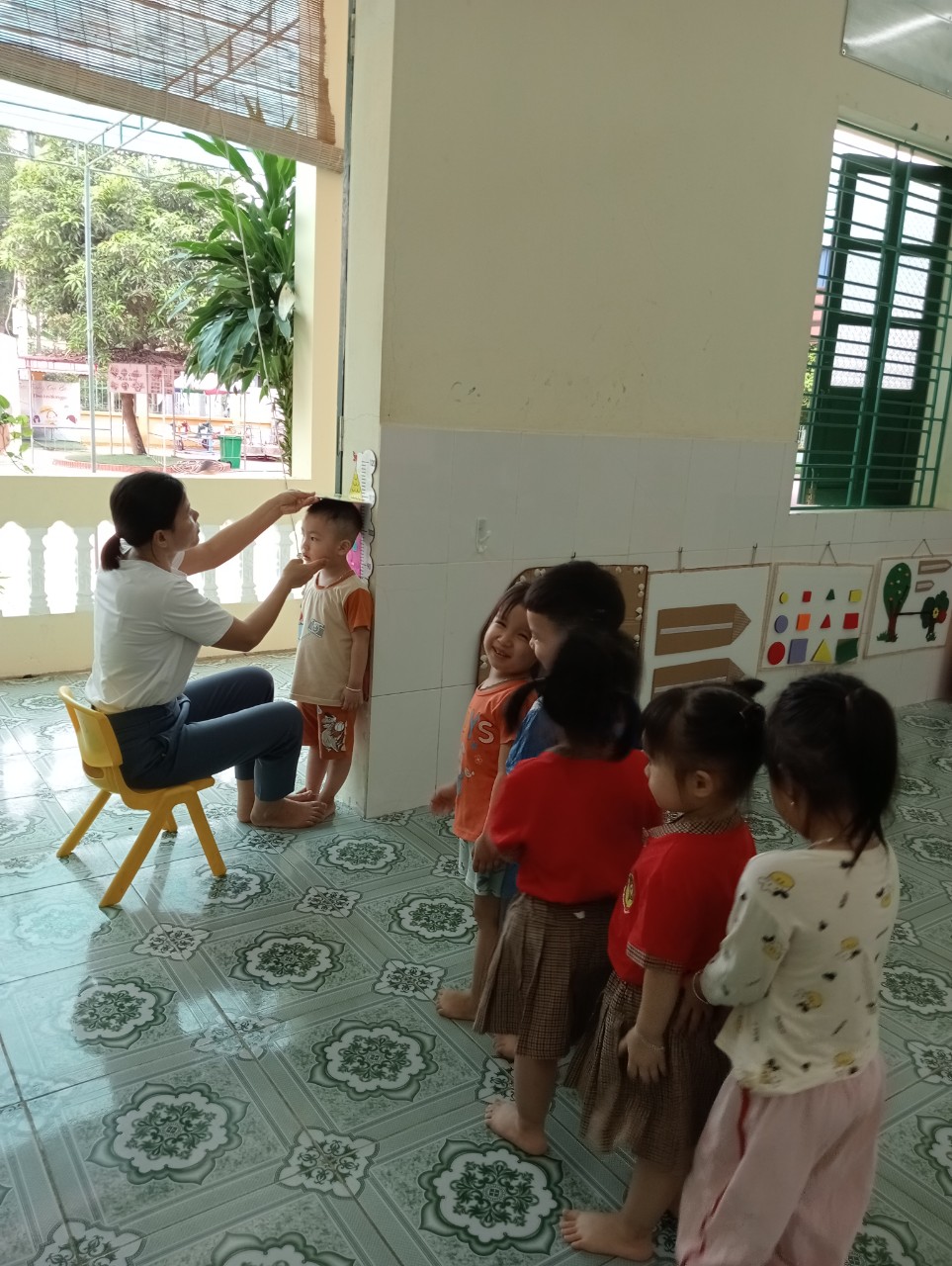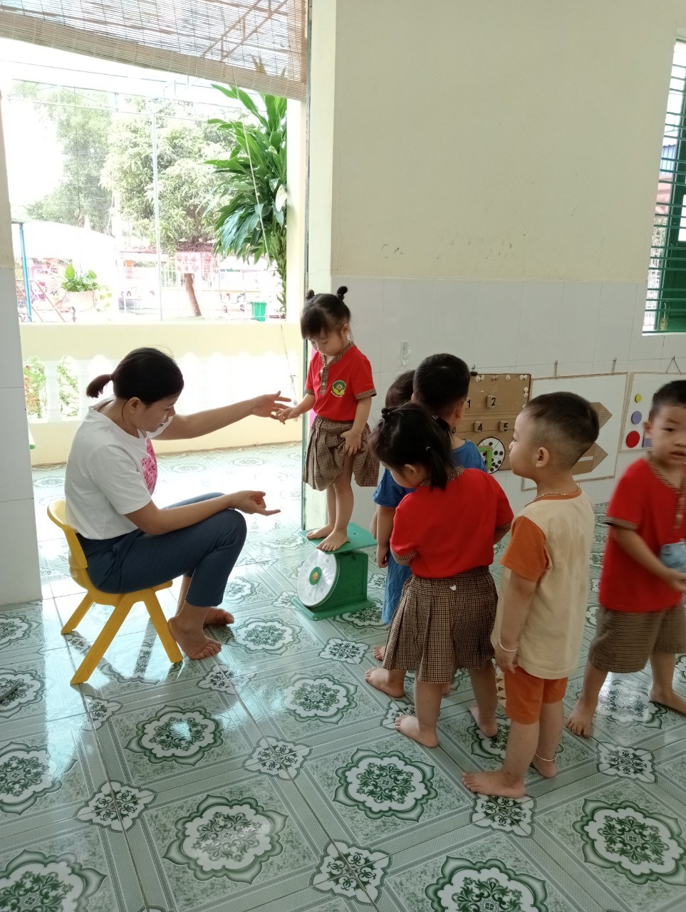 Với trẻ mầm non, việc theo dõi sức khỏe định kỳ là một việc làm vô cung quan trọng và cần thiết giúp cô giáo và phụ huynh nắm rõ tình hình sức khỏe của trẻ, đặc biệt là sự tăng trưởng về mặt thể chất, từ đó đưa ra các biện pháp khắc phục kịp thời đối với những trẻ suy dinh dưỡng thể cân nặng và chiều cao. Đồng thời tuyên truyền cách chăm sóc nuôi dạy trẻ cho các bậc phụ huynh tại gia đình. Chính vì vậy công tác chăm sóc sức khỏe cho trẻ là một trong những nhiệm vụ trọng tâm được nhà trường đặc biệt quan tâm ngay từ đầu năm học và được thực hiện theo định kỳ một cách nghiêm túc. Ngày 12/9/2023 trường mầm non Lý Học tiến hành cân đo đợt 1 cho 100% trẻ toàn trường. Sau đây là một số hình ảnh các bé cân đo lớp 3T3 .