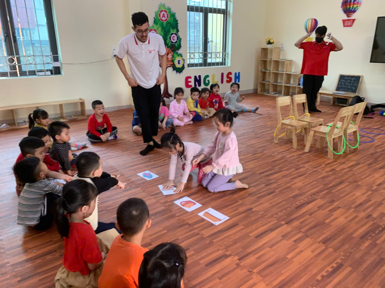 Mỗi này bé đến trường là một niềm vui. Thứ 4 hàng tuần bé đến lớp gặp cô và các bạn bé lại vui vẻ cùng bạn chuẩn bih cho giờ học tiếng anh với thầy giáo. bé háo hức được gặp thầy . Mỗi khi thầy đến lớp các bé ùa vào chào thày và thế là thầy trò lại cùng nhau vui vẻ học, Những từ tiếng anh mới mẻ với bé gây cho bé sự tò mò tìm hiểu. Thầy hài hước lôi cuốn trẻ , trẻ hiếu kì ham học . Tạo nên một giờ học vui vẻ và lý thú. Các con rất thích thú khi học gờ học tiếng anh của thầy Ali . đúng là một giờ học bổ ích và lý thú của các bé lớp 5 tuổi 1.