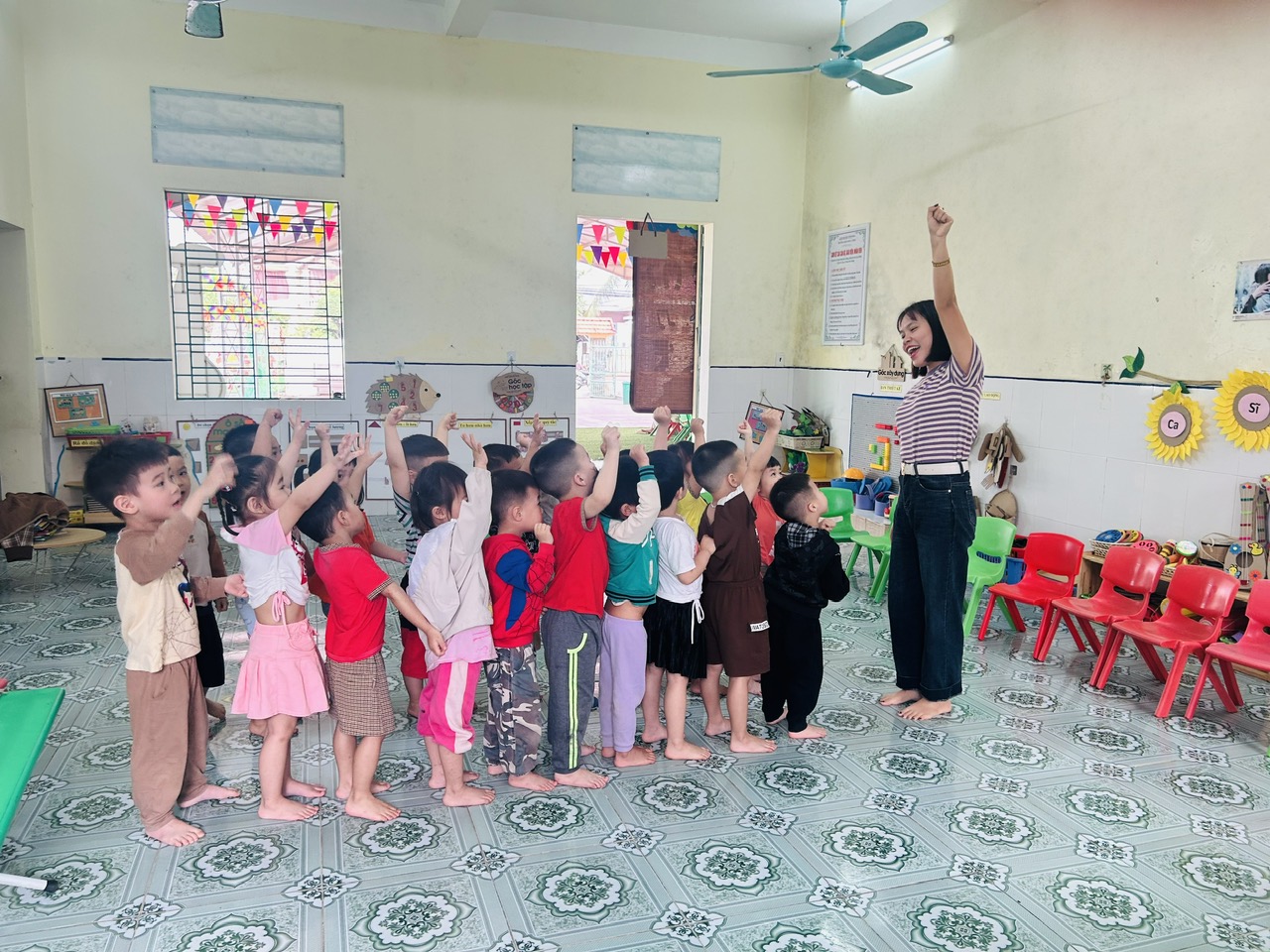 Hoạt động thể dục sáng là một phần quan trọng trong sinh hoạt hằng ngày của trẻ mầm non. Những động tác vận động đơn giản, vui nhộn theo nhạc giúp các bé khởi động cơ thể, rèn luyện sức khỏe và tạo tinh thần vui tươi để bắt đầu một ngày học tập đầy hứng khởi. Thông qua hoạt động này, trẻ được phát triển thể chất, tăng cường sự nhanh nhẹn và hình thành thói quen rèn luyện sức khỏe mỗi ngày. Những nụ cười rạng rỡ của các con trong giờ thể dục sáng đã mang lại một khởi đầu thật năng động và tràn đầy năng lượng. 🌱