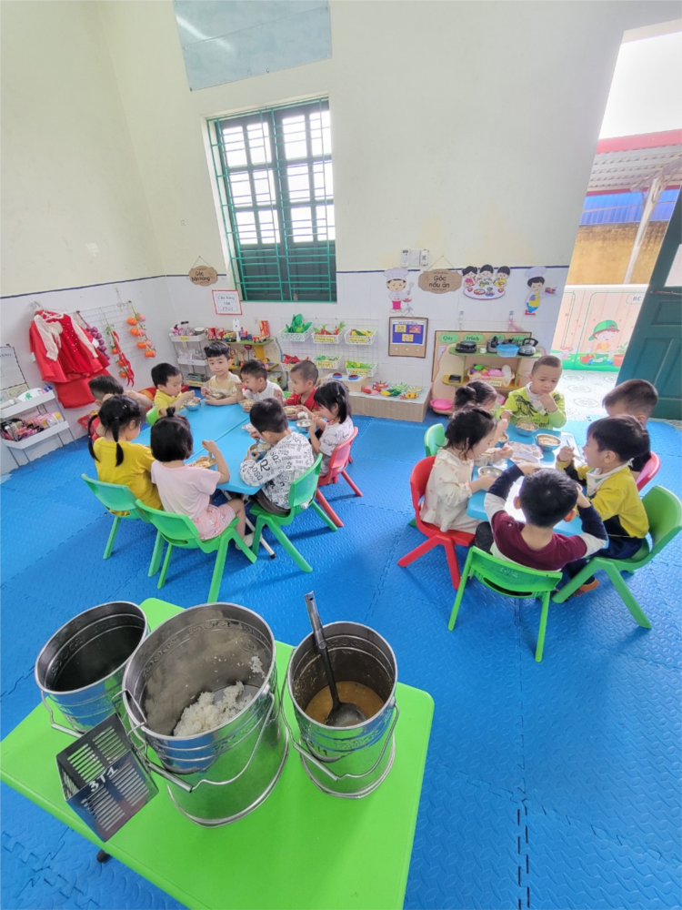 Giờ ăn trưa là một hoạt động quan trọng trong chế độ sinh hoạt hằng ngày của trẻ mầm non. Tại lớp, các bé được cô giáo hướng dẫn rửa tay sạch sẽ trước khi ăn, ngồi ngay ngắn và tự xúc ăn theo khả năng của mình. Trong bữa ăn, cô giáo luôn quan tâm, động viên để các con ăn ngon miệng, ăn hết suất, đồng thời nhẹ nhàng nhắc nhở trẻ giữ gìn vệ sinh, không nói chuyện to và biết mời cô, mời bạn trước khi ăn. Bữa ăn không chỉ giúp trẻ bổ sung đầy đủ dinh dưỡng để phát triển khỏe mạnh, mà còn rèn cho trẻ nề nếp, kỹ năng tự phục vụ và thói quen ăn uống khoa học. Với sự chăm sóc tận tình của cô giáo, giờ ăn trưa luôn diễn ra trong không khí vui vẻ, ấm áp, giúp các con cảm nhận được sự quan tâm và yêu thương mỗi ngày khi đến trường. 🌱